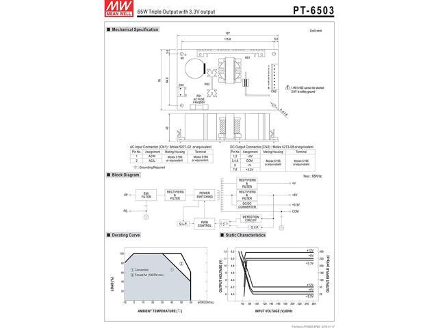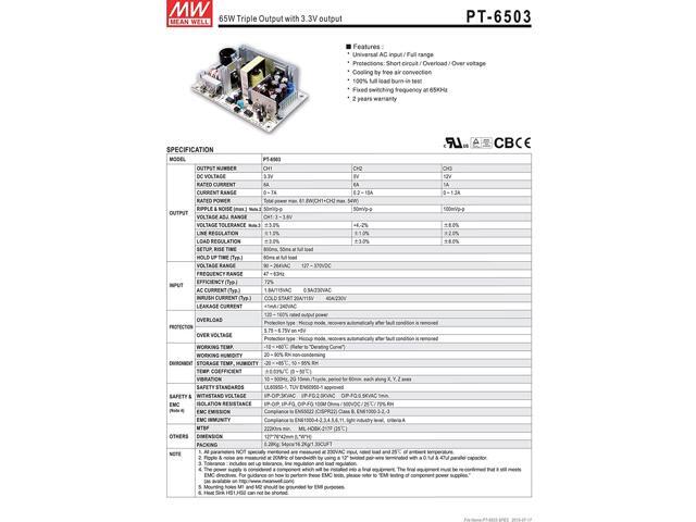 [PowerNex] Mean Well PT-6503 3.3V 5V 12V 1A 6A 61.8W Triple Output with 3.3V output Switching Power Supply