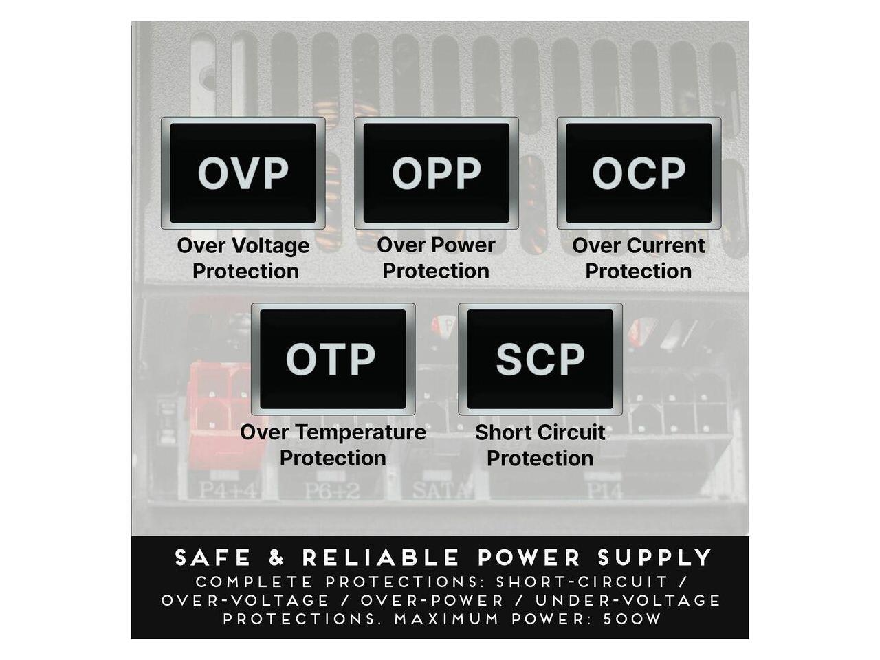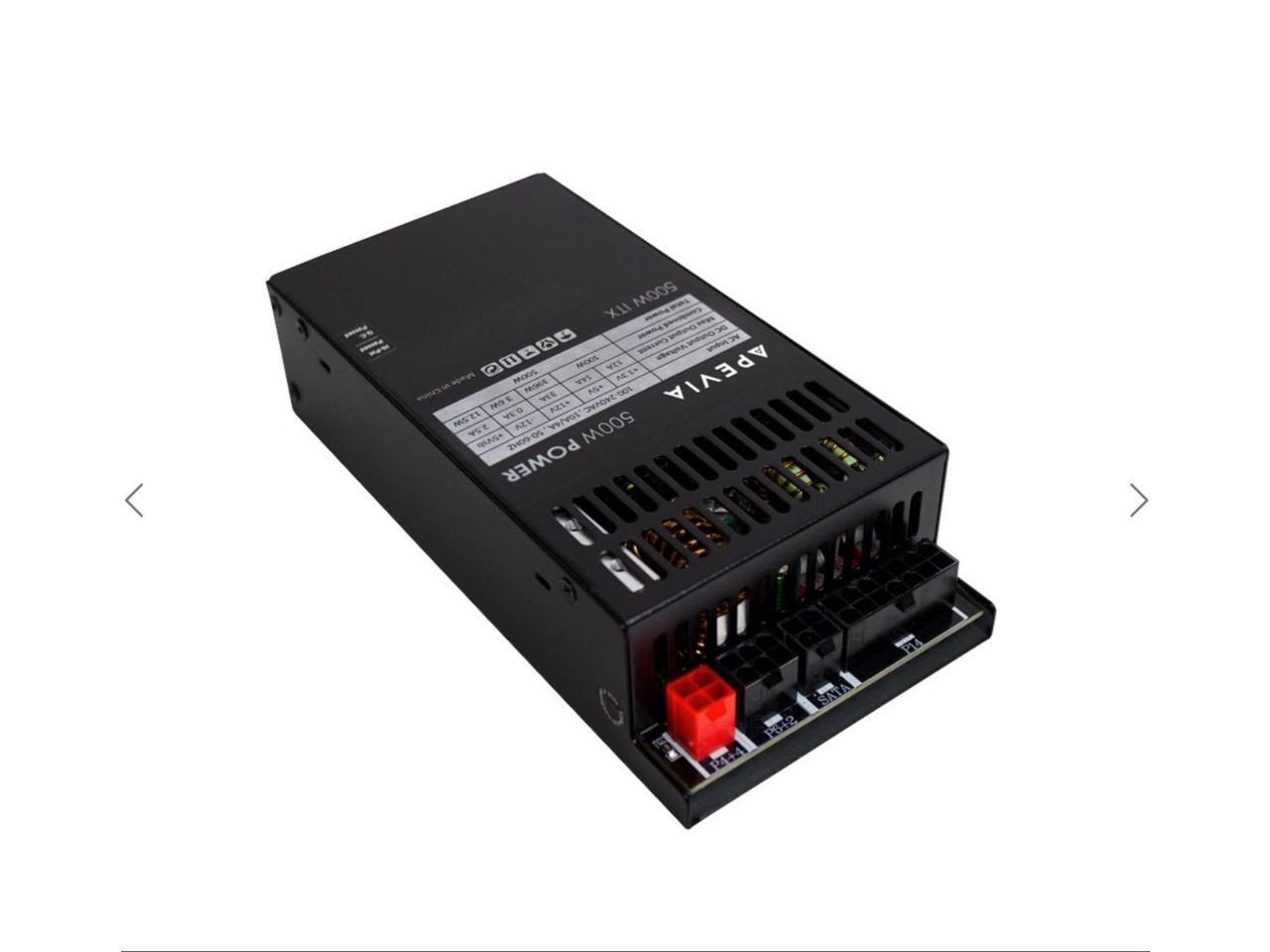 -APEVIA ITX-PFC500W Standard 500W ITX Form Factor ATX Power Supply. Full Range Active PFC 90-264V. Maximum Power: 500W.