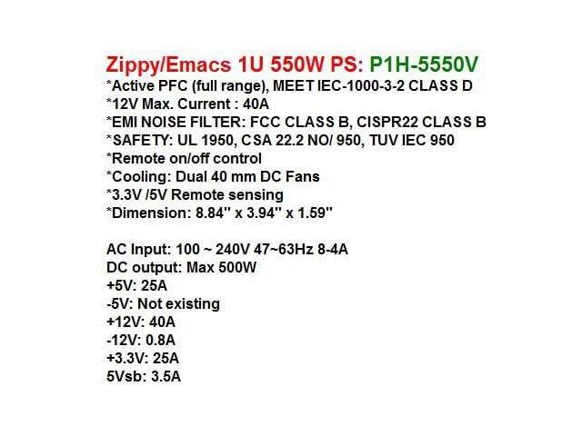 Zippy/Emacs 1U 550W PS: P1H-5550V