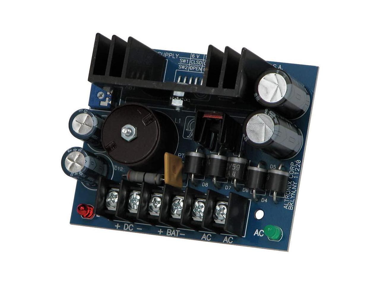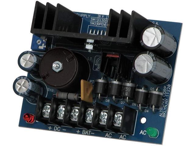 Power supply is electronically regulated with filtered output. LED indicators show AC input and DC output. Transformer required.