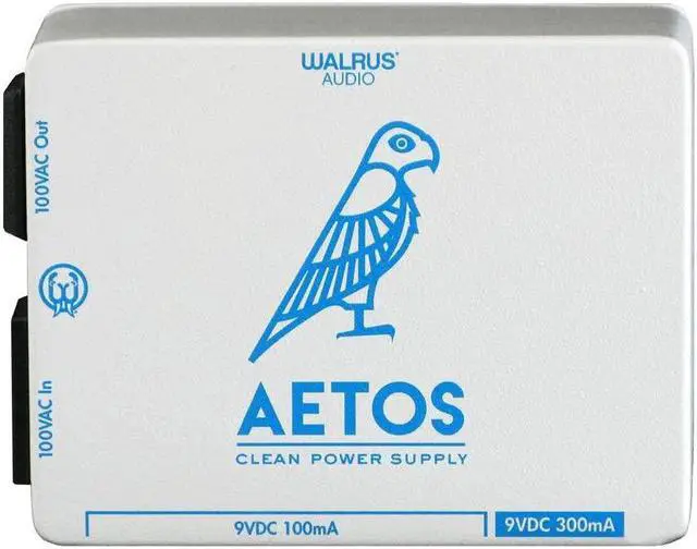 Hanukkah Edition Power SupplyGear Hero HQ Exclusive Limited Edition White/Blue The Walrus Audio Aetos is an 8-output, isolated power supply, utilizing an internal custom wound toroidal transformer to provide the highest noise filtering and cleanest power, giving artists the purest sound in their signal chain. The Aetos is housed in a solid die cast enclosure and is 4.7\u201dlong x 3.7\u201d wide x 2\u201d height and has 8 total 9VDC outputs, 6 are 100mA and 2 outputs are high current outputs (300mA) for higher current drawing pedals like line 6 DL series modelers, the Boss Twin Series Pedals and many digital modulation pedals on the market. It comes with a detachable 120V AC Power cord and also has a 120VAC complimentary power output. This unit comes with 8 \u2013 2.1mm barrel black power cables and 2 black-to-red (Line 6) power cables. Fits under most pedal boards including Pedaltrain (PT JR and up), Pedal Pad, Blackbird Boards, Creation Music Company, and Holeyboards.