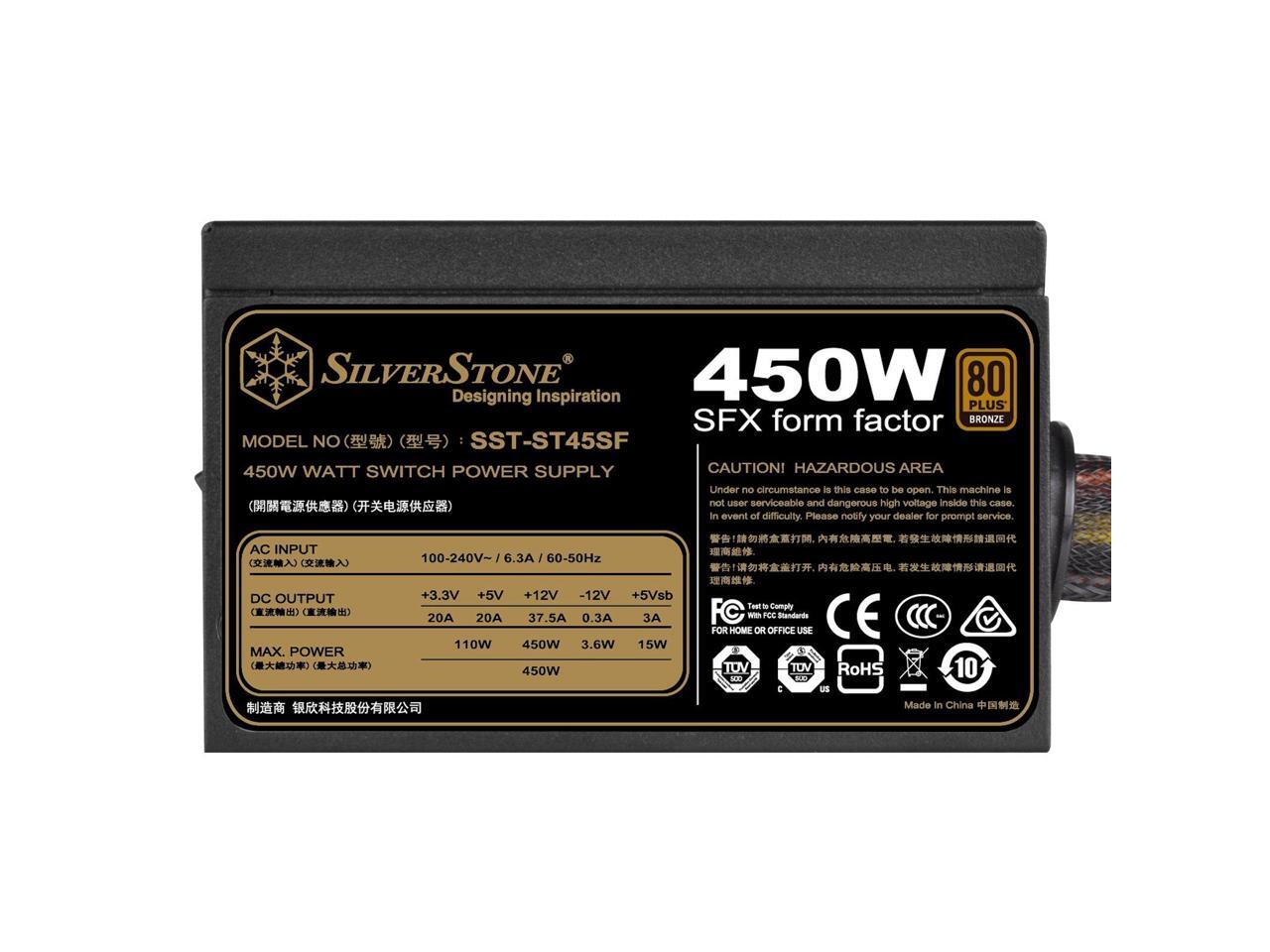 silverstone technology 450w sfx form factor 80 plus bronze power supply (st45sf-v3-usa), sst-st45sf-v3-usa