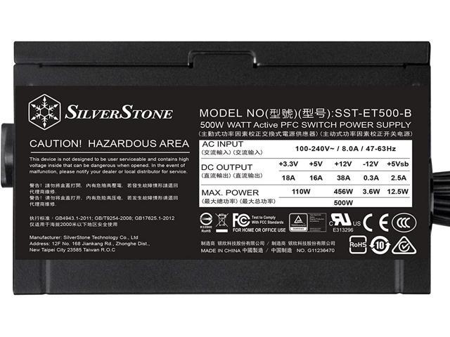 SilverStone Technology ET500-B Silverstone 80 Plus Bronze 500W ATX Switching Power Supply