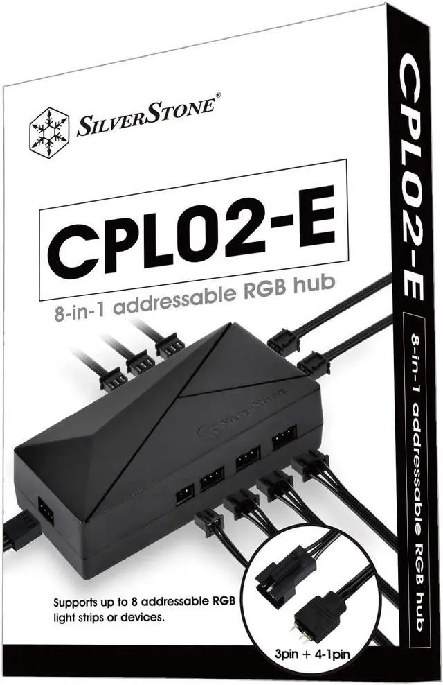 8-In-1 addressable RGB hub for those looking to add lots of addressable RGB fans or light strips, cpl02-e supports up to 8 addressable RGB light strips or devices. Sata power adapter Cable provides more convenience along with plenty of stable power to drive addressable RGB devices. Cables included allow for connection of Silverstone or standard addressable RGB devices.