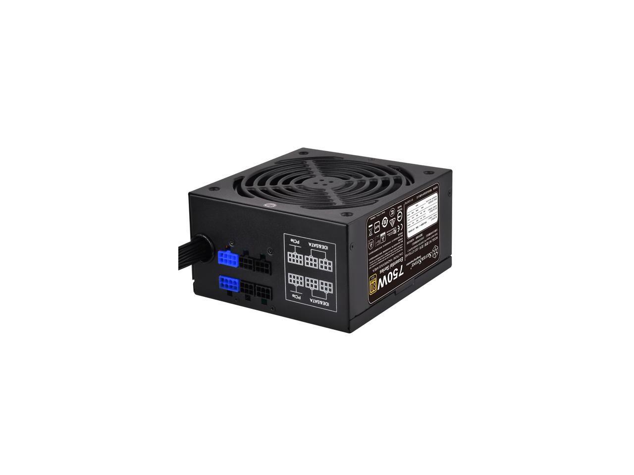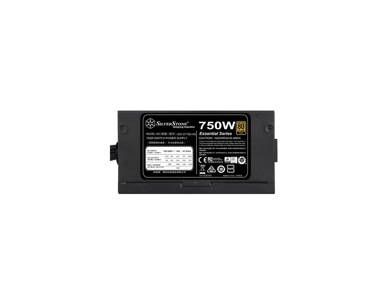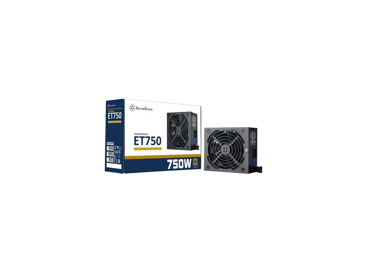 SilverStone Essential Series ET750-HG 750W 80 PLUS Gold Semi-Modular ATX Power Supply, Silent 140mm Fan, Single +12V Rail, All-Black Flat Cables