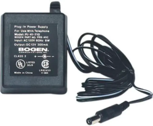 The Bogen DC Power Supplies are designed to supply power to battery-operated and other low voltage DC equipment from a 120-volt AC source. They are rugged versatile and dependable and are suitable for many types of telephone paging equipment amplified speakers and horns tone generators and intercom systems. The PRS40C provides 12VDC for equipment requiring up to 300 milliamperes and is UL listed. The PRS48 provides 48VDC at 100 milliamperes as required for various telephone paging access devices. The PRS48 is UL Listed. Models PRS624DA and PRSASAC feature the capability of providing 24VDC @ 35 milliamperes Loop Current to the TIP and RING lines of a loop-start trunk or keysystem CO line.