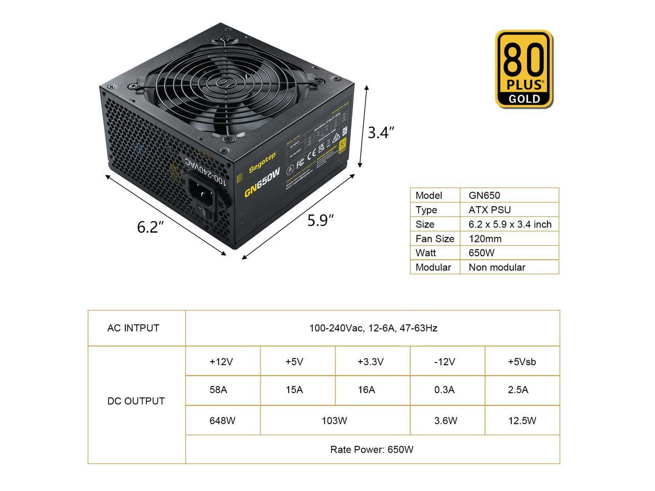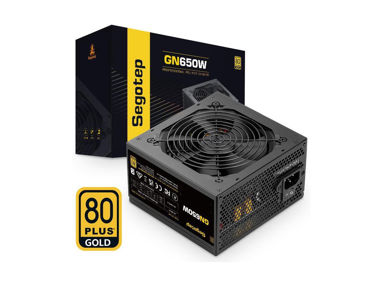 SEGOTEP 650W 80 Plus Gold Power Supply Non-Modular with 6+2 Pin Connectors PFC Protection and RoHS Compliance 120mm Silent Fan Gaming PSU Black (5 Years Warranty)