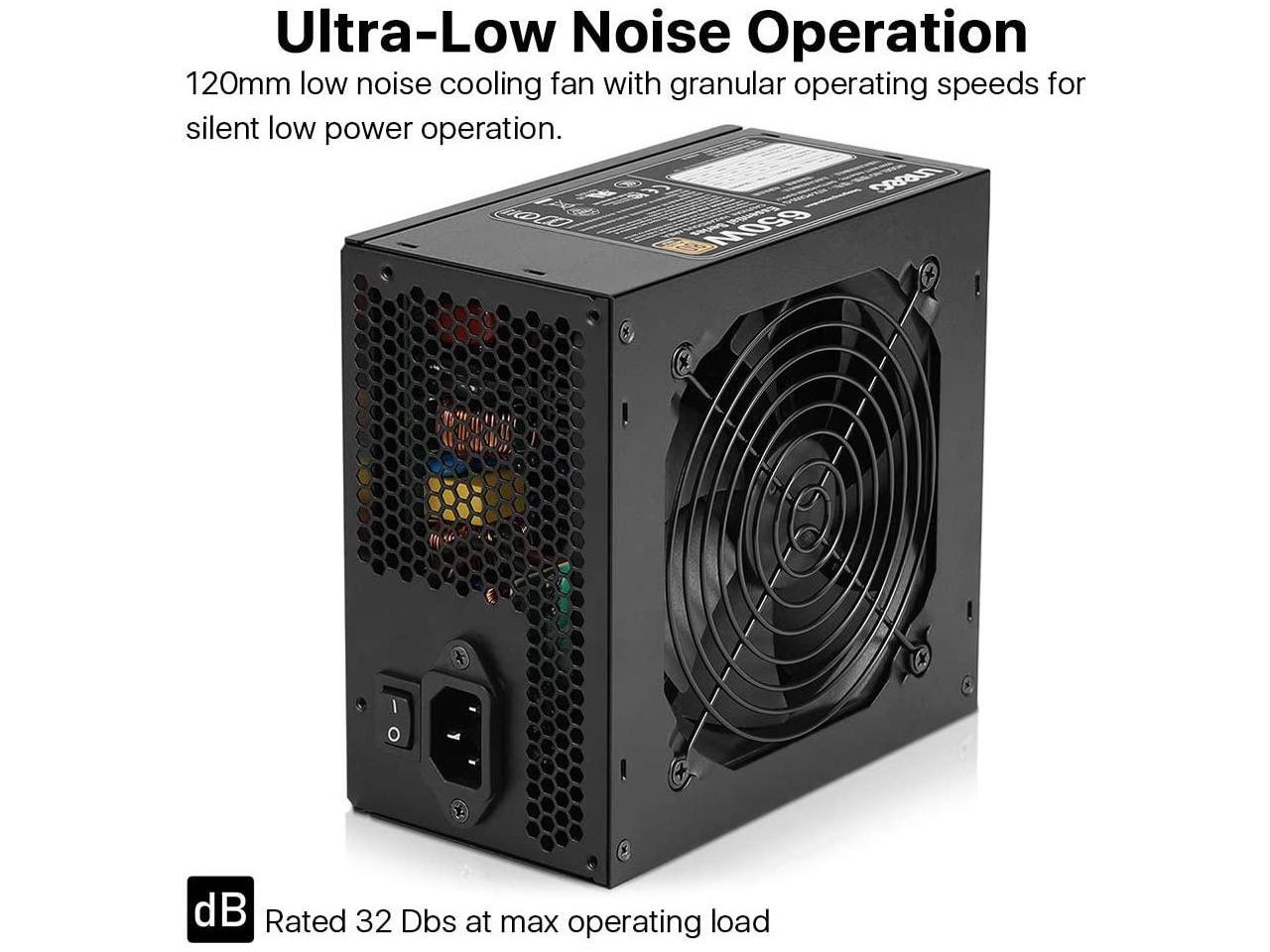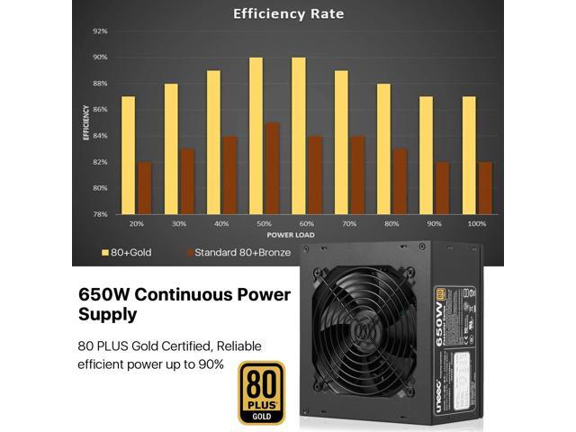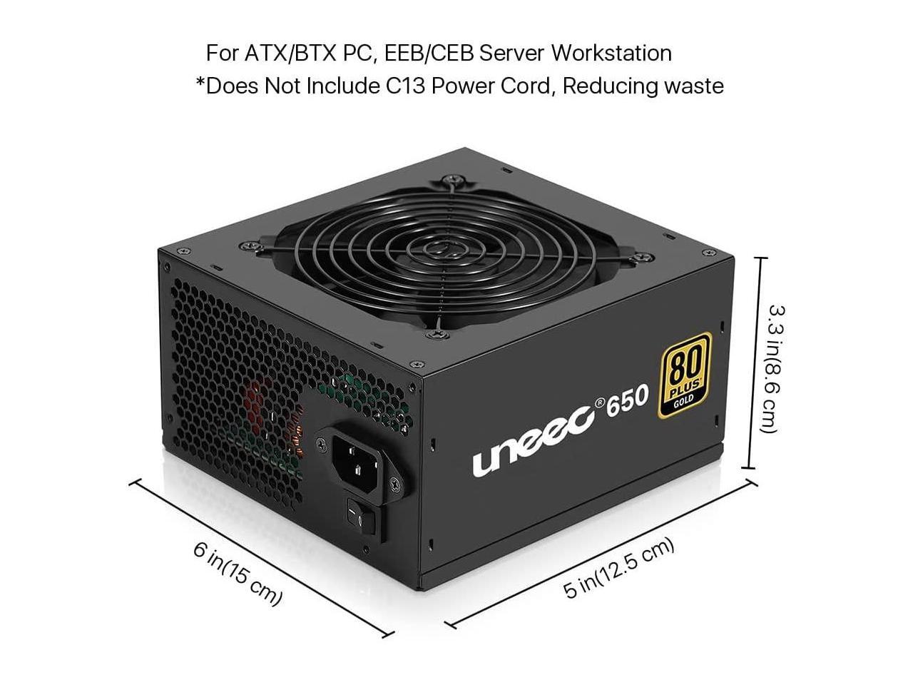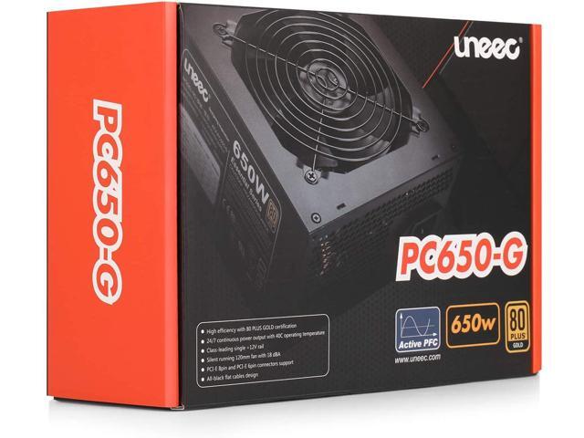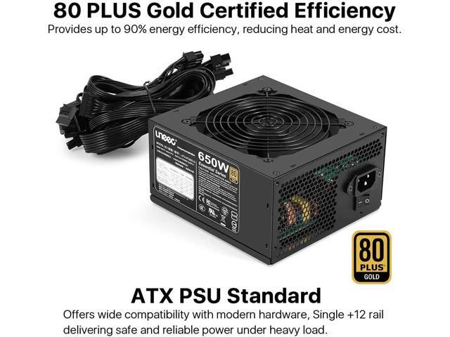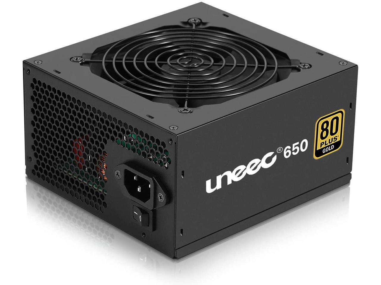 Uneec 650W 80+ Plus Gold Certified Gaming Power Supply PSU Silent Fan 33dbm Maximum for ATX PC Server Workstation Computer, STI Crossfire Game, Dual CPU, Active PFC Auto Adapter