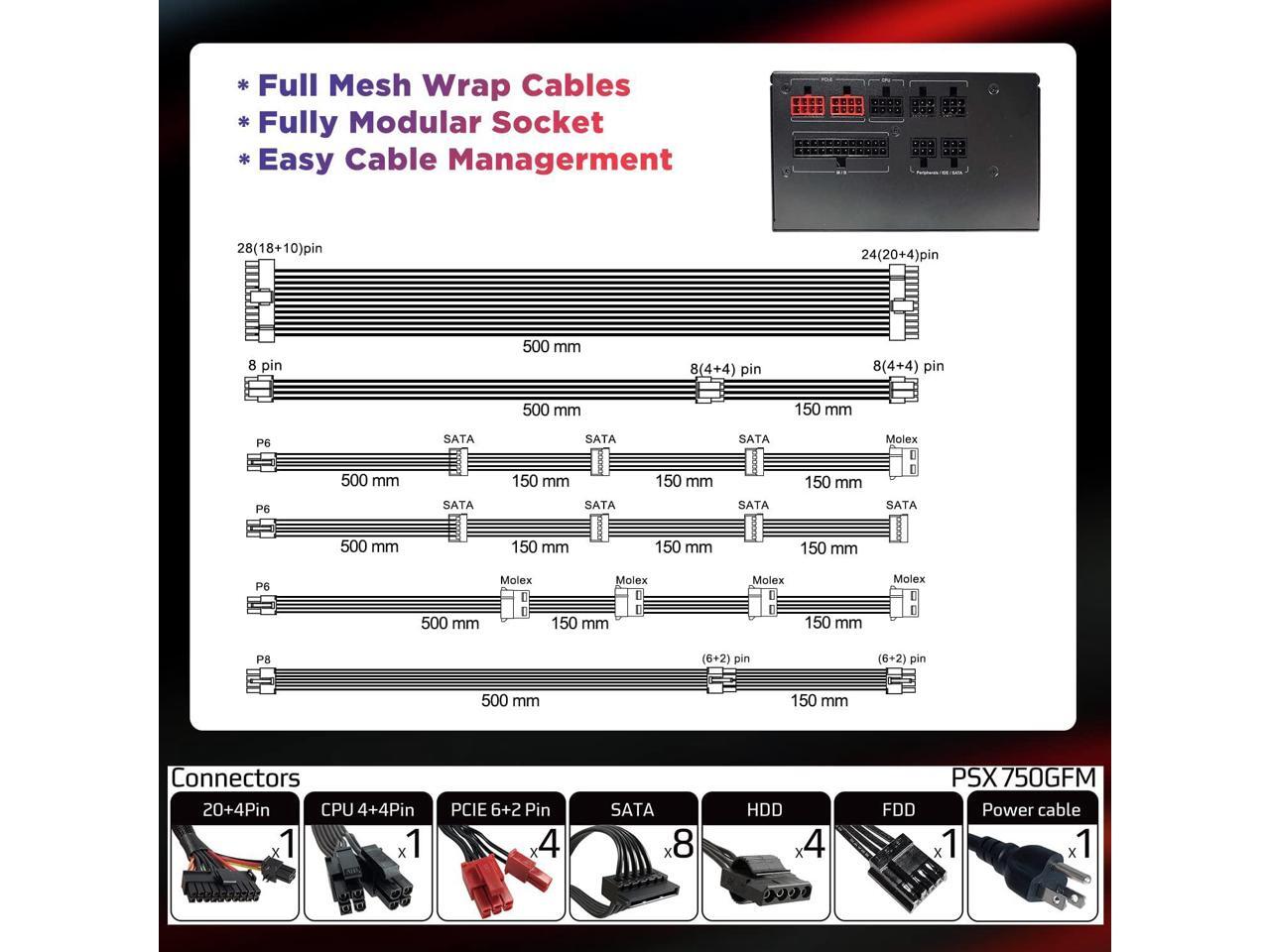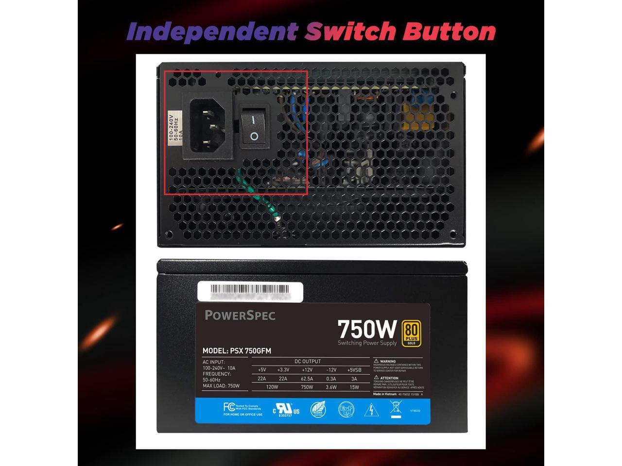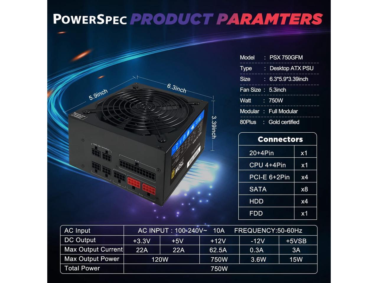 PowerSpec 750 Watt 80 Plus Gold Fully Modular ATX Power Supply Active PFC SLI Crossfire Ready Gaming PC PSU Computer Switching Power Supply, PS 750GFM