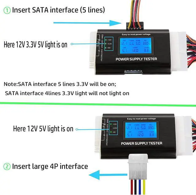 1.?Plug power supply 24PIN or 20PIN and P4, P6 or P8 into the corresponding jack of the power tester.