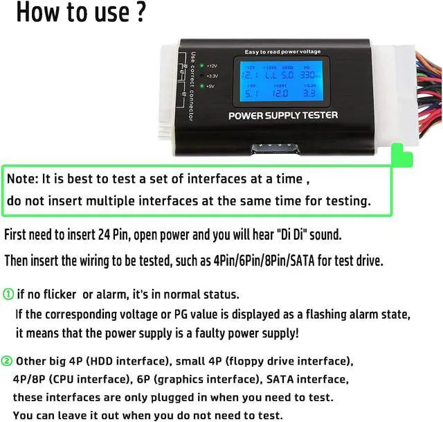 5. Please do not plug the interface in the wrong position or reverse, which may cause the power tester to smoke or damage your power supply.