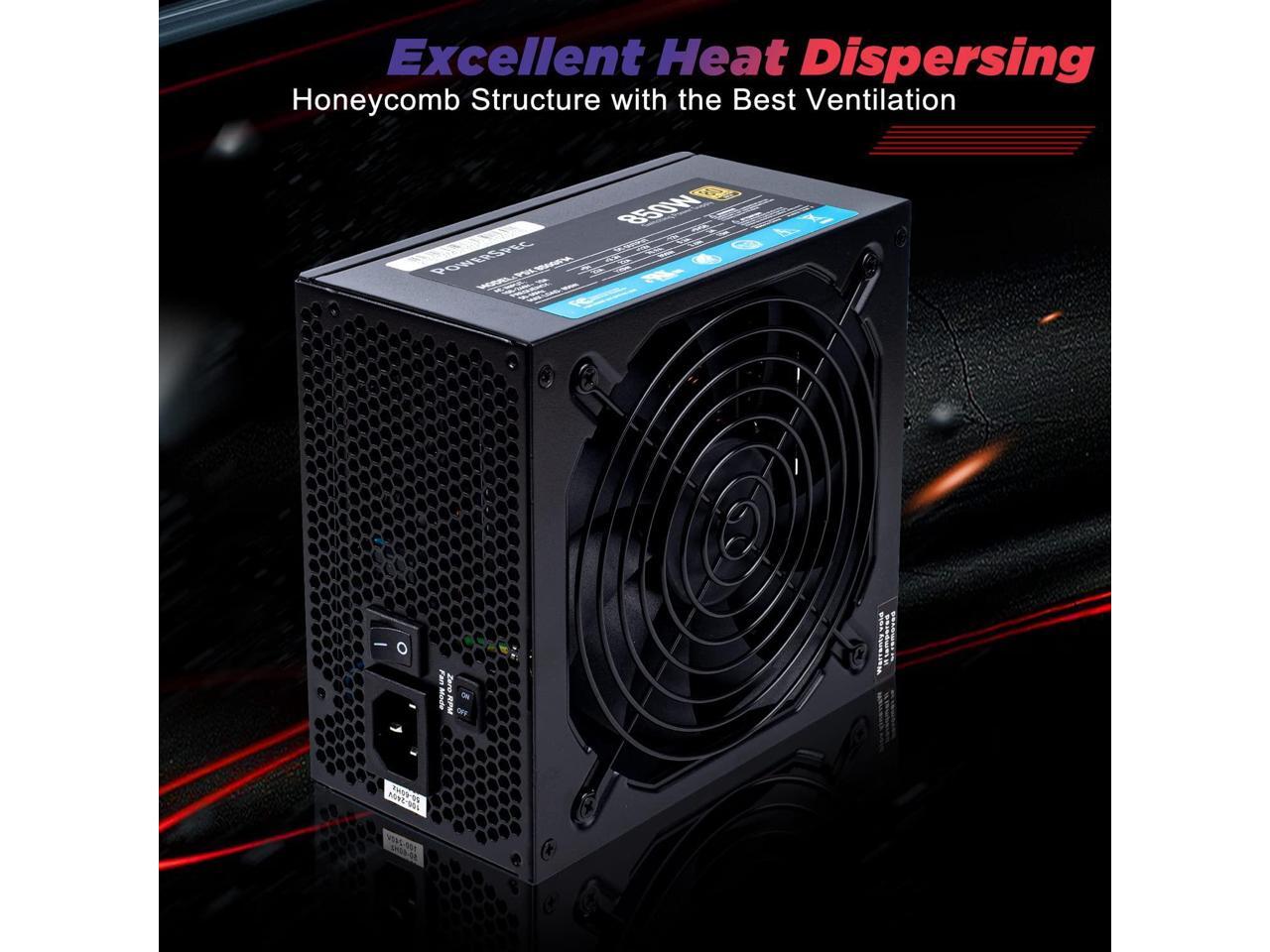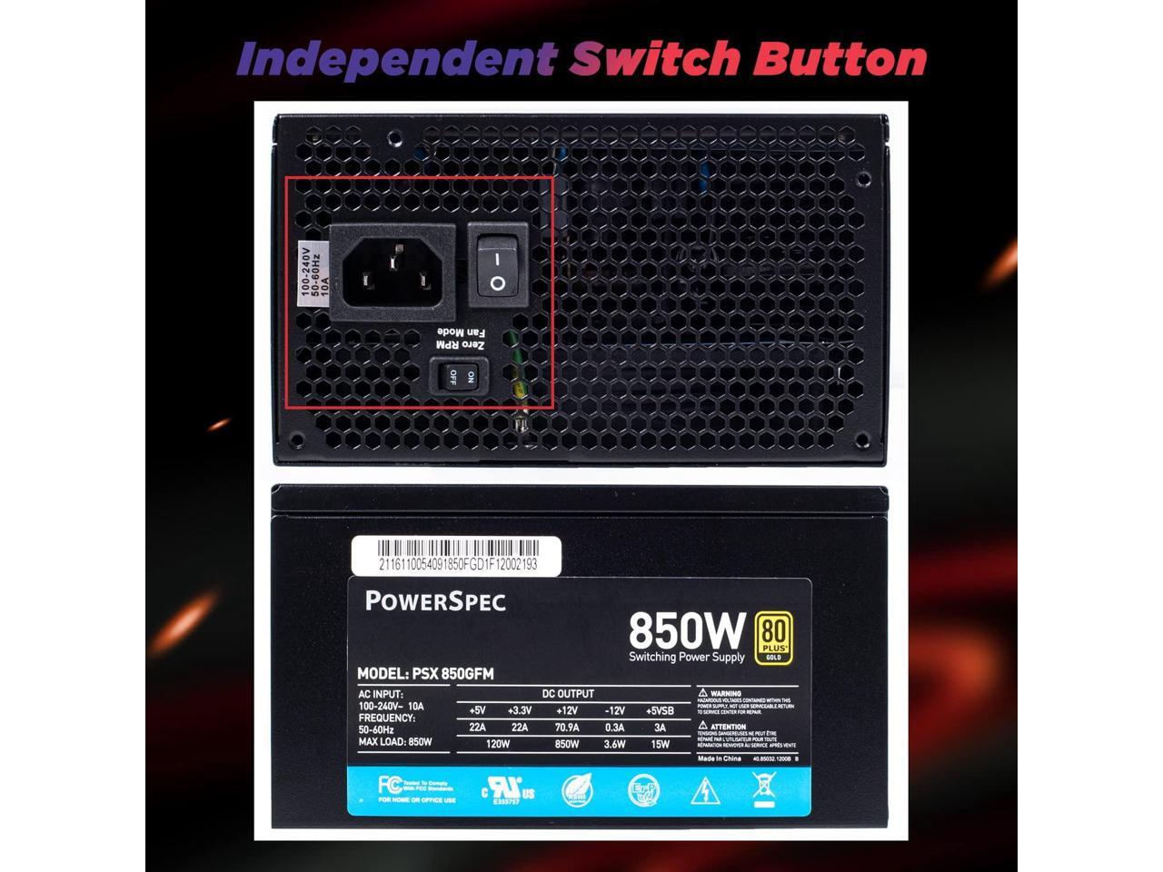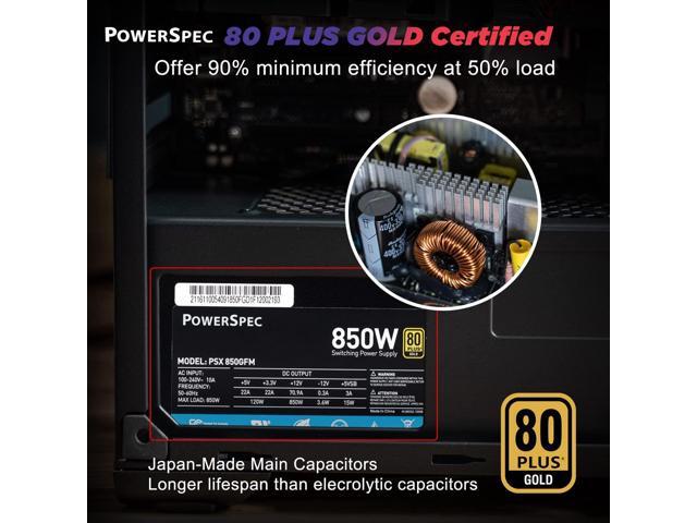 PowerSpec 850 Watt 80 Plus Gold Fully Modular ATX Power Supply Active PFC SLI Crossfire Ready Gaming PC PSU Computer Switching Power Supply, PSX 850GFM NRGB
