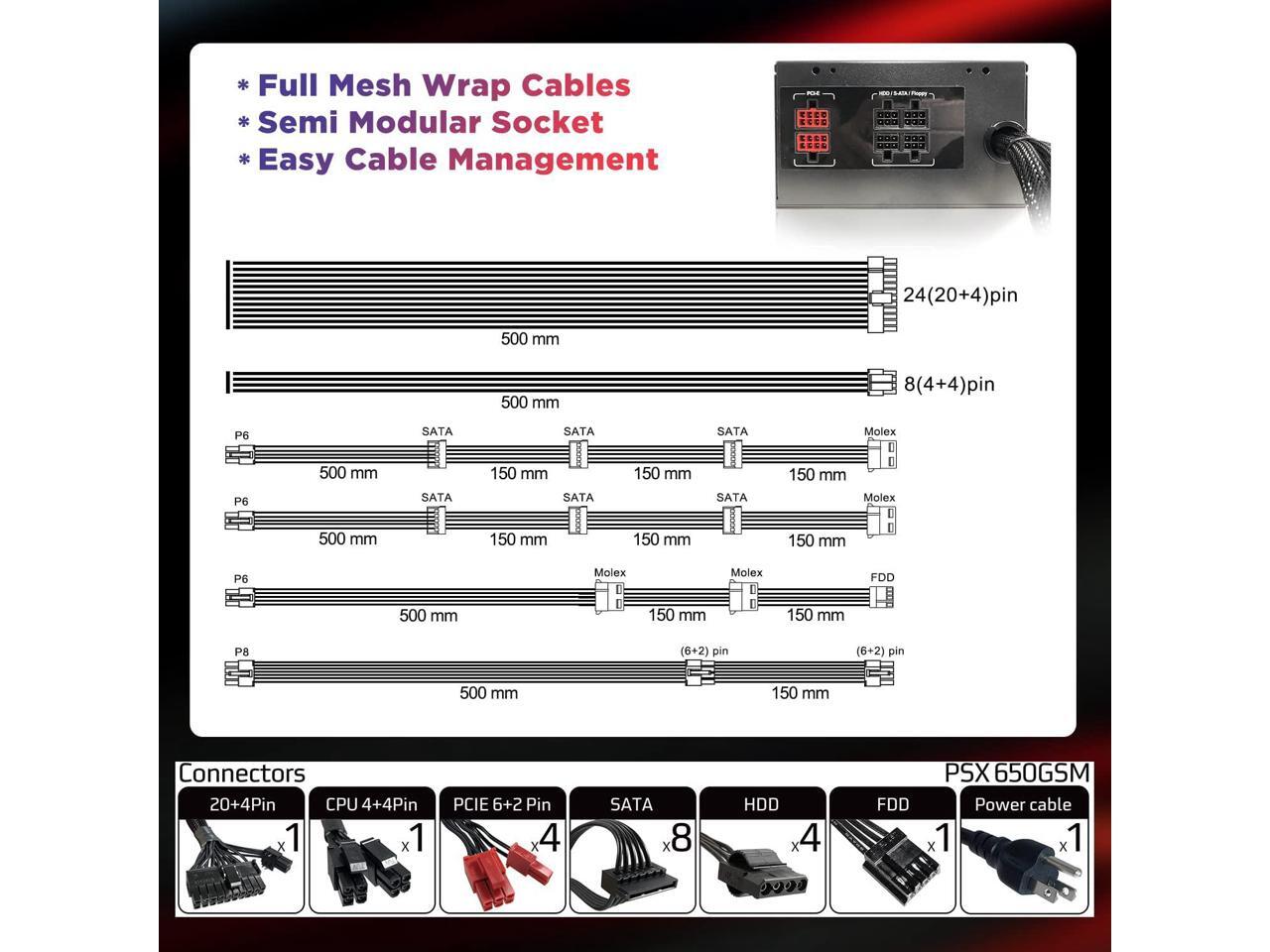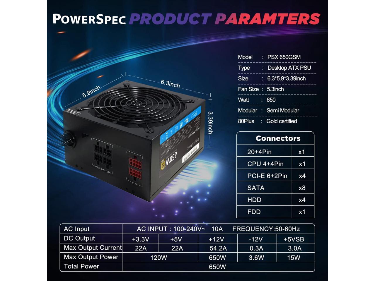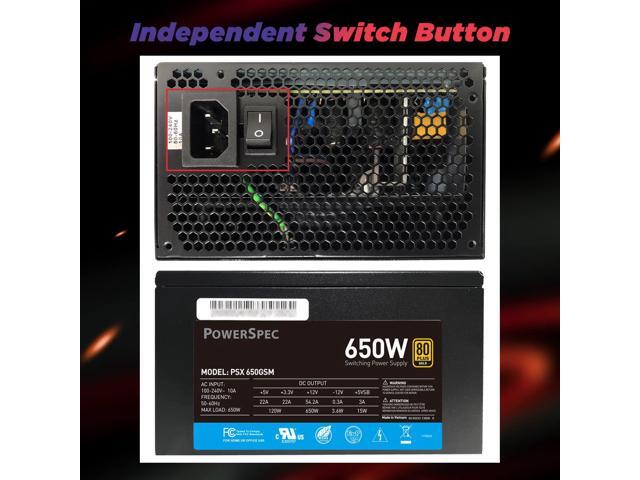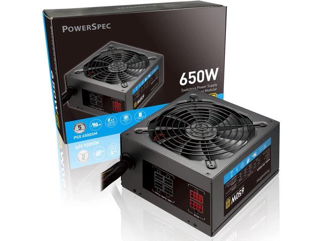 PowerSpec 650 Watt 80 Plus Gold Semi Modular ATX Power Supply Active PFC SLI Crossfire Ready Gaming PC PSU Computer Switching Power Supply, PS 650GSM