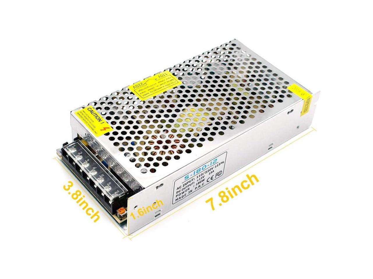 inShareplus 12V 15A 180W, DC Universal Regulated Switching Power Supply, 100-240V AC to DC 12 Volt LED Driver, Converter, Transformer for LED Strip Light, CCTV, Computer Project, 3D Printer