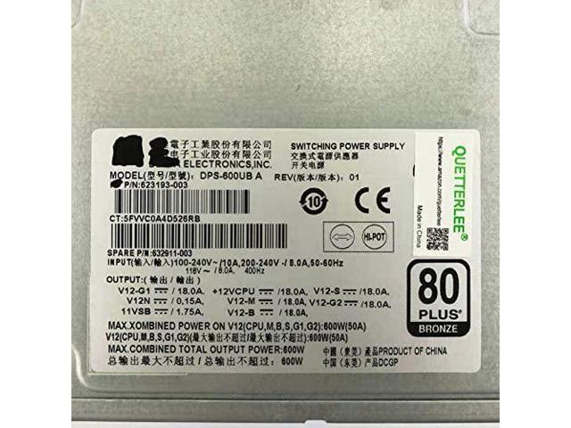 QUETTERLEE Replacement New 600W Power Supply for HP Z420 Workstation Series Compatible Part Number 623193-003 632911-003 623193-001 632911-001 DPS-600UB A