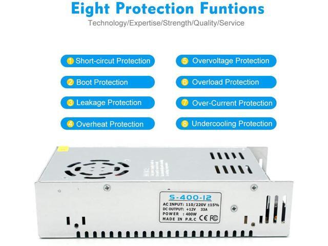 inShareplus 12V 33A 400W, DC Universal Regulated Switching Power Supply, Converter AC 100-240V to DC 12 Volt LED Driver, Transformer, Adapter for LED Strip Light, 3D Printer, Radio, Computer Project