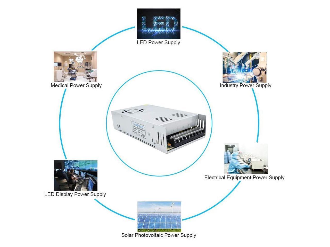 - Universal Input: 100-240V AC; Output: 12V DC 33A