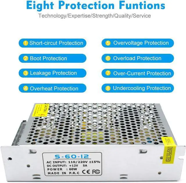 • Universal Input: 100-240V AC; Output: 12V DC 5A
