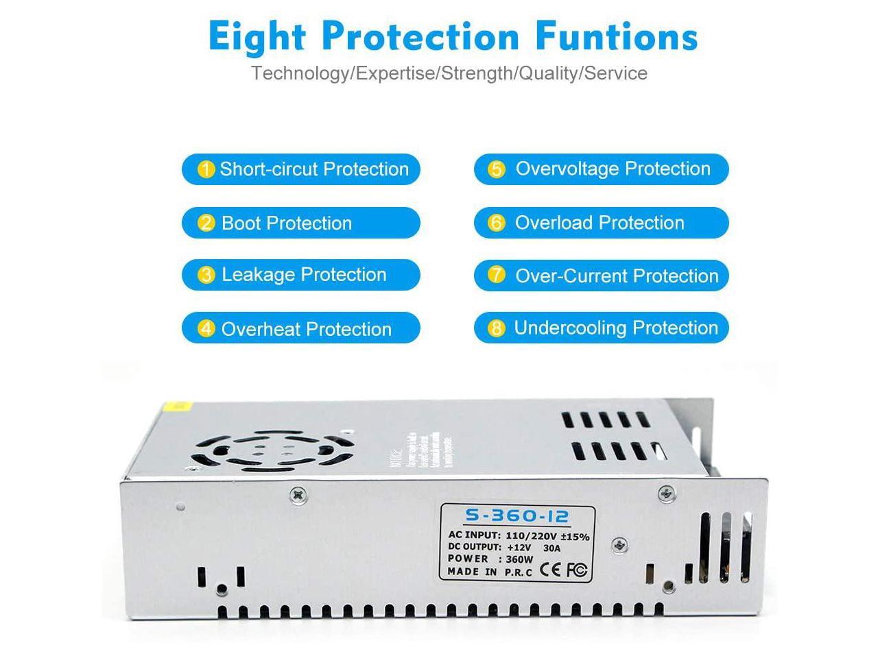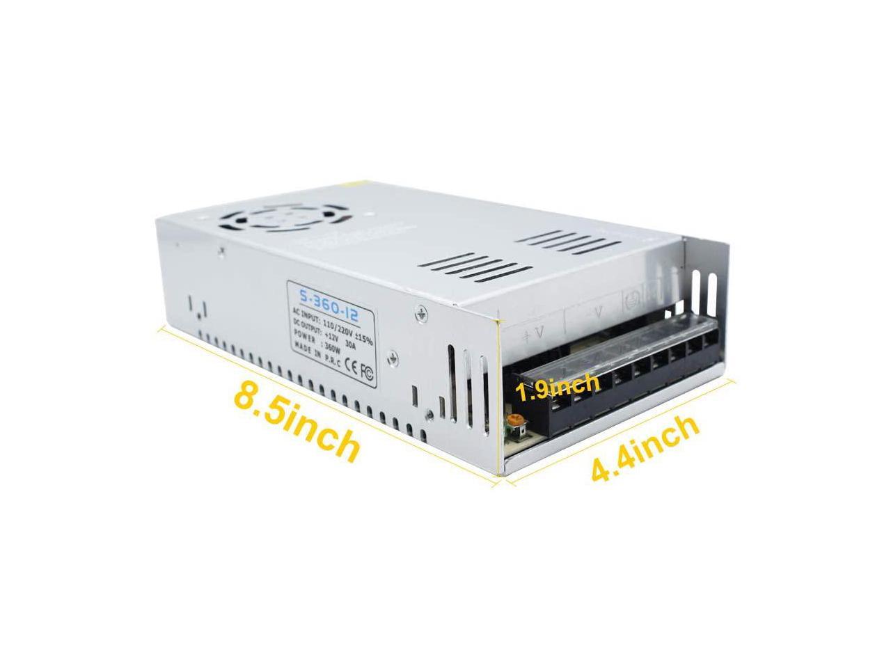 inShareplus 12V 30A 360W, DC Universal Regulated Switching Power Supply, Converter AC 100-240V to DC 12 Volt LED Driver, Transformer, Adapter for LED Strip Light, 3D Printer, Radio, Computer Project