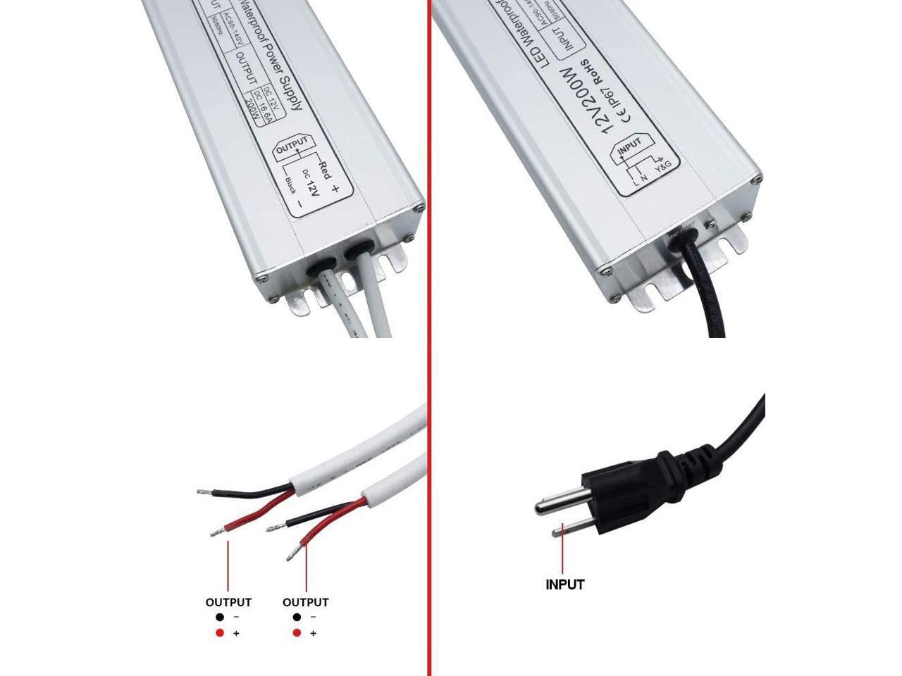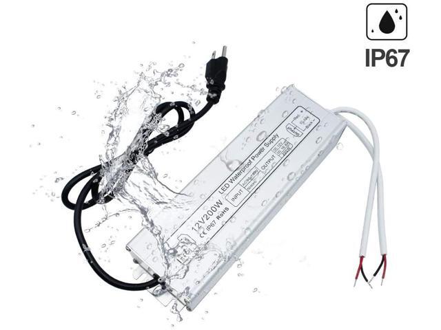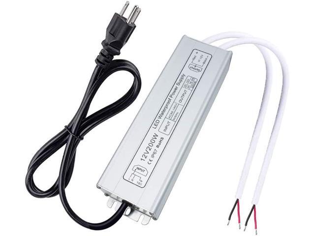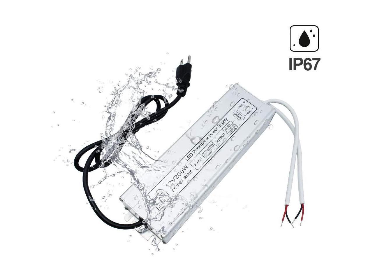 inShareplus LED Power Supply, 200W IP67 Waterproof Outdoor Driver,AC 90-265V to DC 12V 16.6A Low Voltage Transformer, Adapter with 3-Prong Plug for LED Light, Computer Project, Outdoor Use