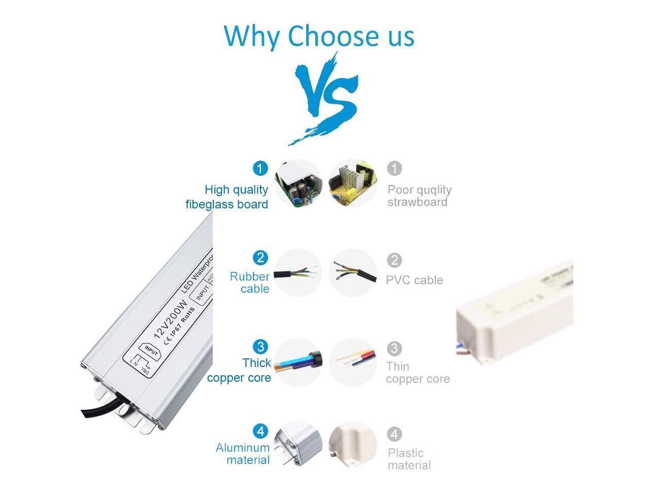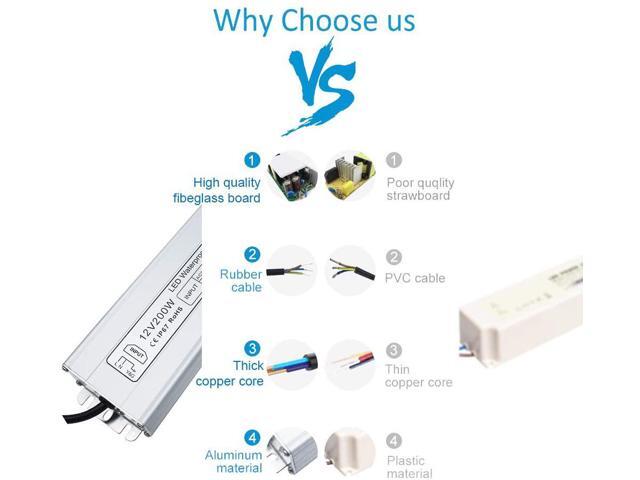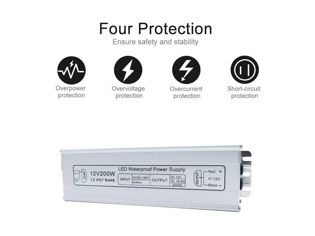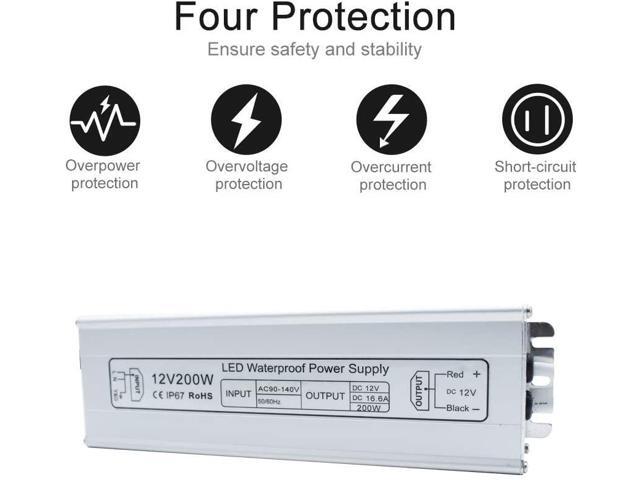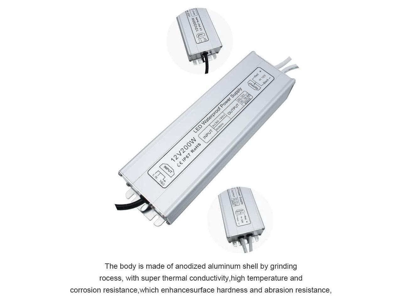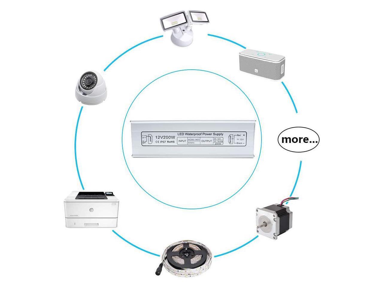 - Converts 110V AC to 12V DC, widely use for LED strip lights, led light bulbs and other 12V DC led lights(200W).