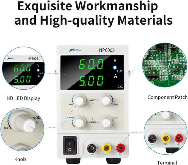 Naweisz DC Power Supply Variable is single channel output power supply, small-sized and lightweight, features high accuracy, reliability. It is a great tool for scientific research, product development, widely used in automotive battery, telephone exchange communication, electronic repair etc.