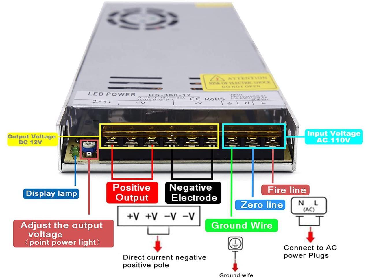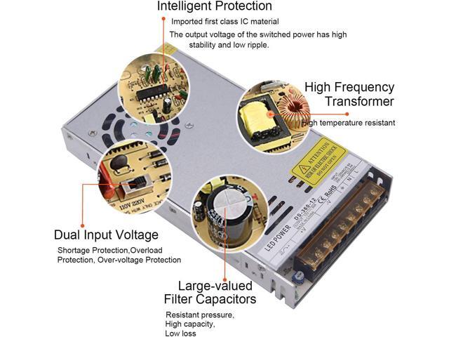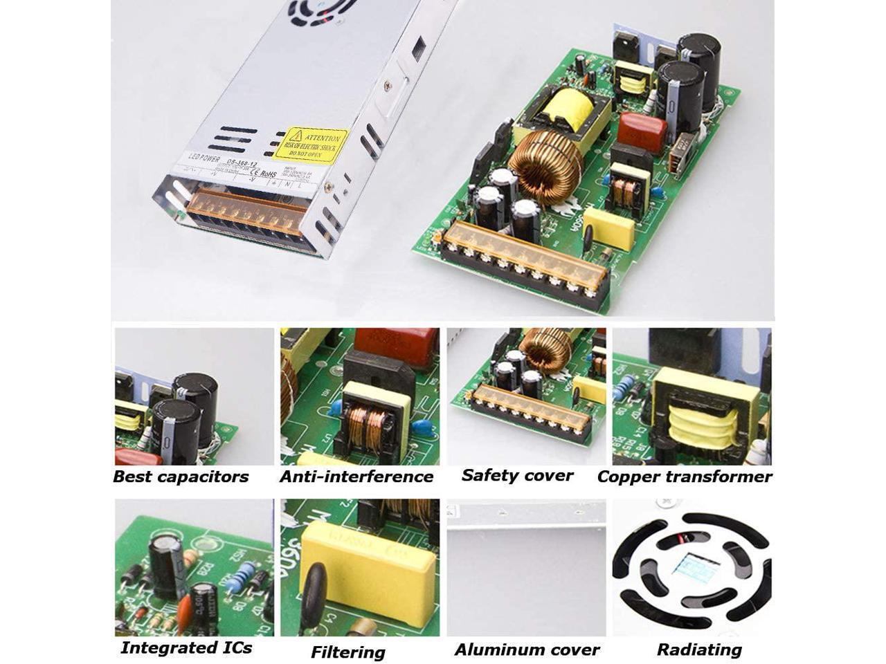 - Stable constant voltage DC12V output: Convert 120VAC or 220VAC to DC12V, Rated Current-30A, Rated max Power-360W.