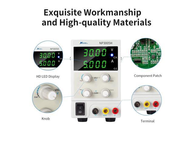 DC Power Supply Variable 30V 5A Precision Adjustable Power Supply 4-Digital LED Display-with Alligator Leads for Lab Equipment, DIY Tool, Repair, Electronic Research
