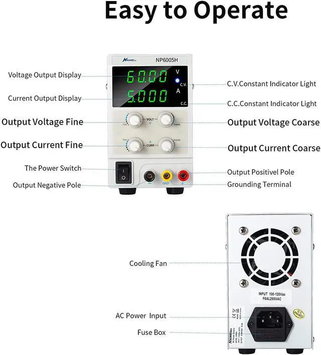 Naweisz DC Power Supply Variable is single channel output power supply, small-sized and lightweight, features high accuracy, reliability. It is a great tool for scientific research, product development, widely used in automotive battery, telephone exchange communication, electronic repair etc.
