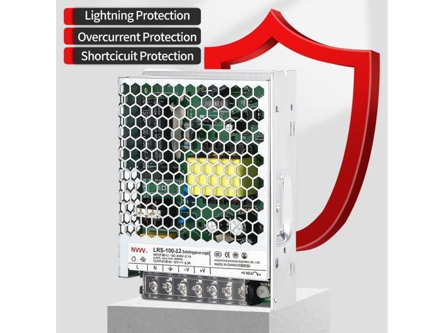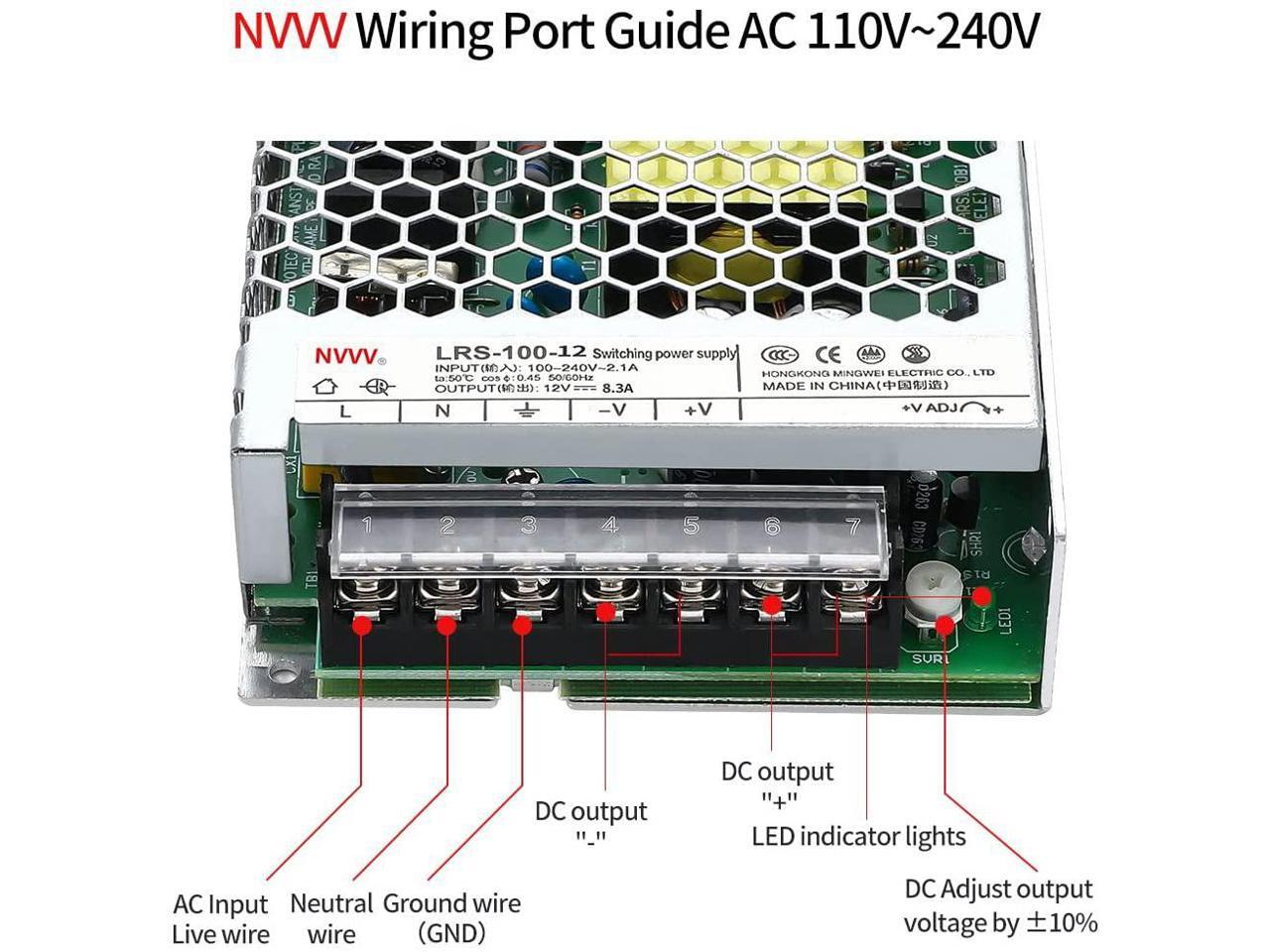 NVVV dc switching power supply LRS-100-12 ultra-thin ac 100-240V to DC12V 8.5A converter switch transformer for CCTV, Computer Project, 3D Printer, LED Strip Light, Router (12V 100W)