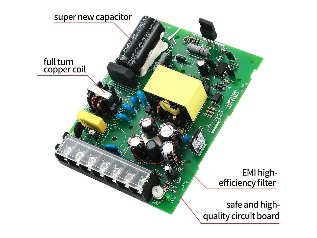 - Input Voltage: 100-240V AC range selectable by switch, air cooling by built-in fan. Filter capacitance; High withstand voltage; Low dissipation; Large capacity