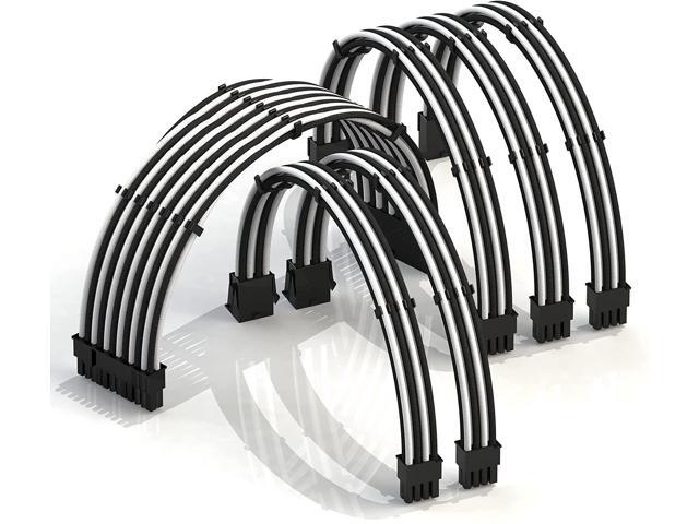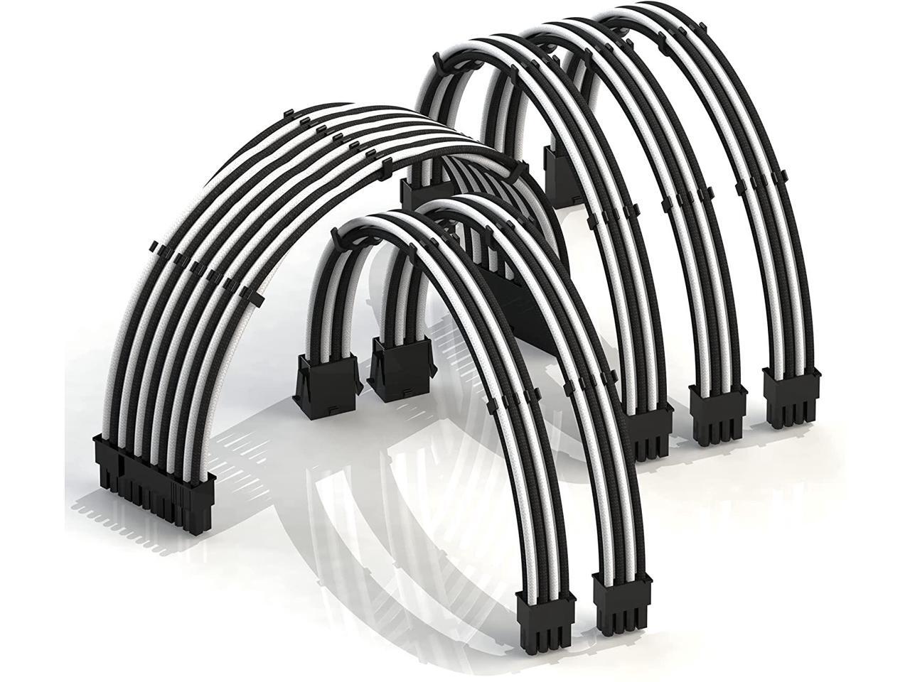 LINKUP - 50cm PSU Cable Extension Sleeved Custom Mod GPU PC Braided w/Comb Kit - Compatible with RTX30901 x 24 P (20+4)2 x 8 P (4+4) CPU3 x 8 P (6+2) GPU Set500mm - WhiteBlack