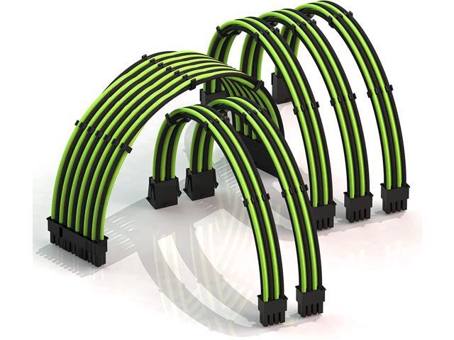 LINKUP - 50cm PSU Cable Extension Sleeved Custom Mod GPU PC Braided w/Comb Kit - Compatible with RTX30901 x 24 P (20+4)2 x 8 P (4+4) CPU3 x 8 P (6+2) GPU Set500mm - GreenBlack