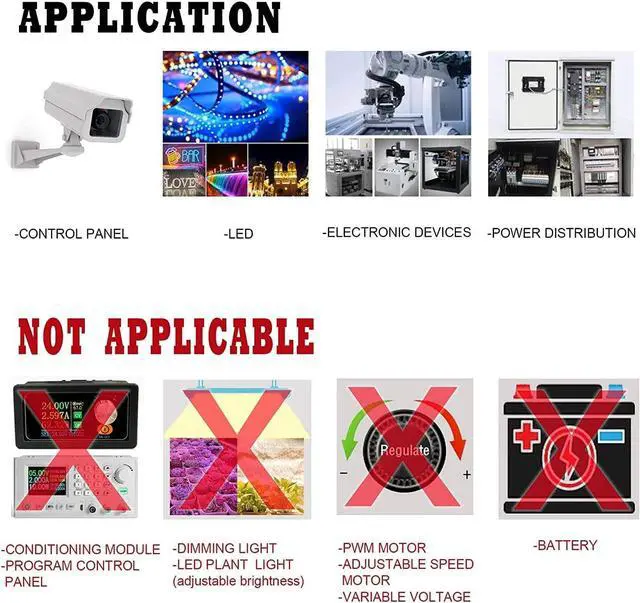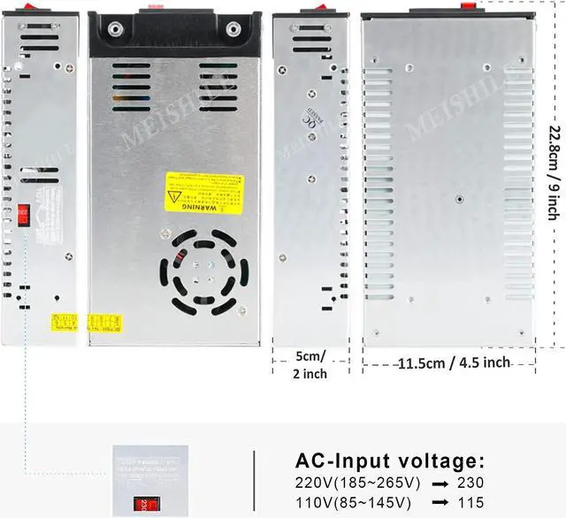 Note:?This?product?has?the?cooling?fans?to?perform?a?sound?(the?sound?of?a?fan?rotates)? Not?applicable?to: Programming / Speed?Control?Motor / dimming?Light / plant?Light / power?Controller / constant?Current?Module. Constant?Voltage?Power?Supply,?Non-Constant?Current?PSU, Suitable for powering single DC voltage devices.? Main?Parameter Output?voltage:?DC?12V Range?Of?Difference:±1% Rated?Power:?600W Peak?current:50A?max (Please?calculate?the?power?and?current?accurately,?and?add?at?least?a?20%?dummy?load.? If?it?is?a?motor,?add?a?dummy?load?of?more?than?50%.) Efficiency:?>83%? Leakage current: ?<1mA / 230V Input?voltage:AC?110V (85-145V?) / 220V(185-265V) When AC 85-145V, Frequency 60Hz, Efficiency?>80% When AC 185-265V, Frequency 50Hz, Efficiency?>70% Working Temperature: -10 ~ + 60 (Refer to the output load derating curve) Working Humidity: 20 ~ 90% RH Storage Temperature: -20 ~ + 85 Storage Humidity: 10 ~ 95% RH? Product?Size:?228*115*50 mm?/ 9*4.5*2 inch Net weight:?0.8 kg / 1.75 lb Package?weight: 1.1 kg / 2.5 lb Package?contains: 1*POWER SUPPLY 1*OPERATING MANUAL Please download the multilingual OPERATING MANUAL from the Sales URL, or contact Seller's Customer Service.