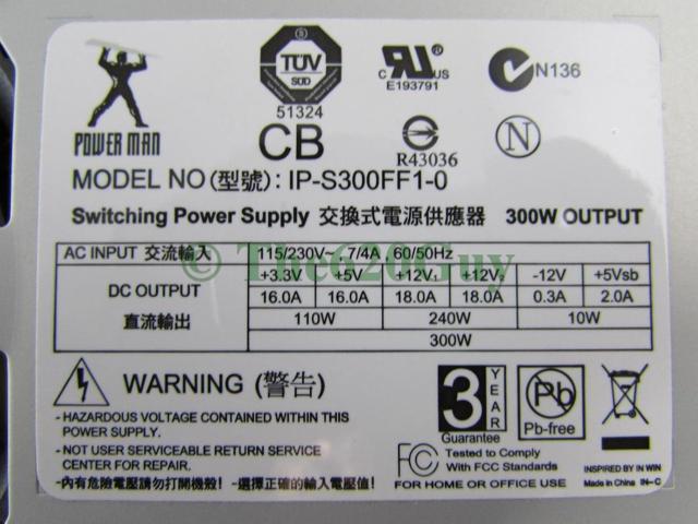 Power Man IP-S300FF1-0 300W 300 Watts TFX V 2.1 Switching Power Supply 24pin ATX