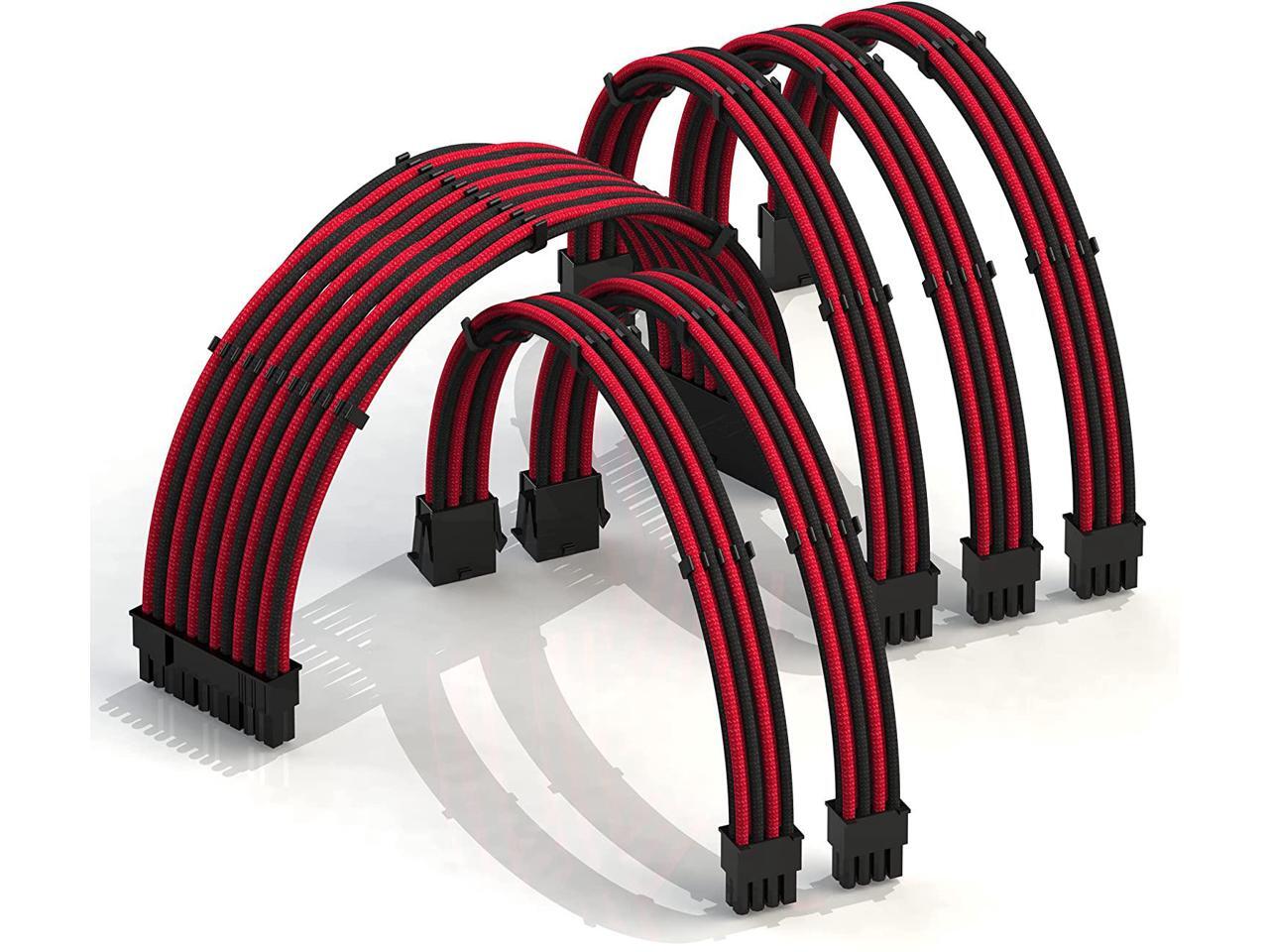 LINKUP - 50cm PSU Cable Extension Sleeved Custom Mod GPU PC Braided w/Comb Kit - Compatible with RTX30901 x 24 P (20+4)2 x 8 P (4+4) CPU3 x 8 P (6+2) GPU Set500mm - RedBlack