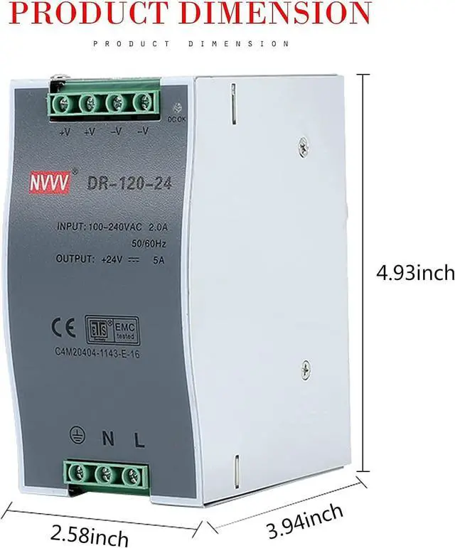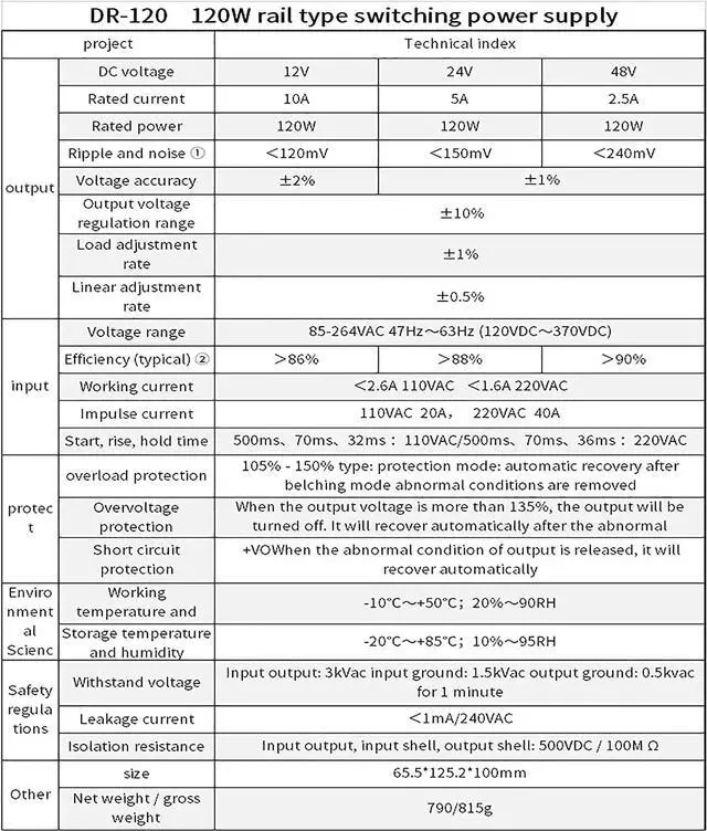 1 x 120W 24V single output industrial DIN rail power supply DR-120-24