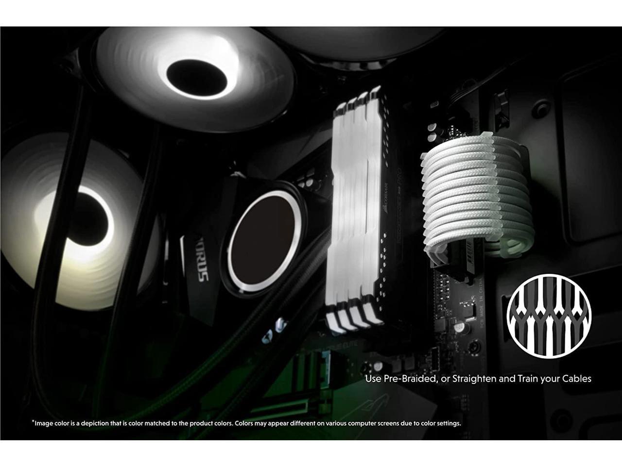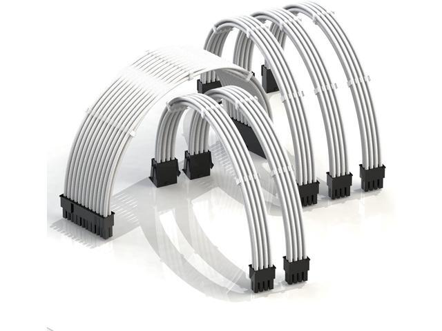 LINKUP - 30cm PSU Cable Extension Sleeved Custom Mod GPU PC Braided w/Comb Kit - Compatible with RTX30901 x 24 P (20+4)2 x 8 P (4+4) CPU3 x 8 P (6+2) GPU Set300mm - White
