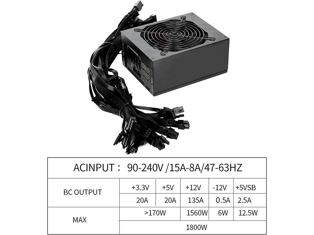 1800W Mining Power Supply Support 8 GPUs GPU Mining Rig, ETH Miner, Active PFC, PC 1800W Full Modular Mining Power Supply PSU for 8 GPU ETH Rig Ethereum Miner Designed for US Voltage 110V
