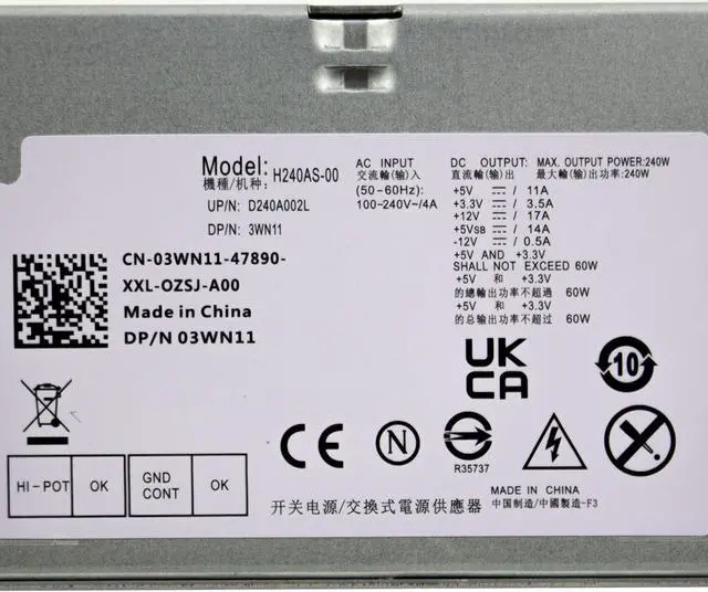 YEECHUN 240W New Power Supply for Dell OptiPlex 390 790 960 990 3010 7010 9010 Small Form Factor SFF H240ES-00 D240ES-00 AC240AS-00 AC240ES-00 DPS-240WB L240AS-00 H240AS-00 3WN11