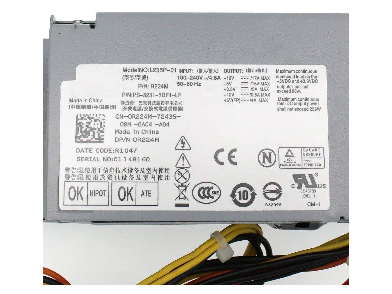235W FR610 PW116 RM112 67T67 WU136 R224M Replacement Power Supply for Dell Optiplex 760, 960 780 580 Small Form Factor (SFF) System, Models Number: H235P-00 L235P-01 L235P-00 H235E-00 F235E-00