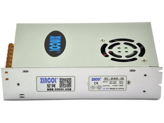 XINCOL AC to DC Converter AC110V/220V to DC12V 20A 240W Switched Mode Switching Power Supply (SMPS) Transformer Driver Adapter for LED Strip Light with Built-in Fan