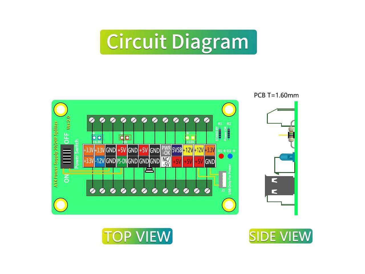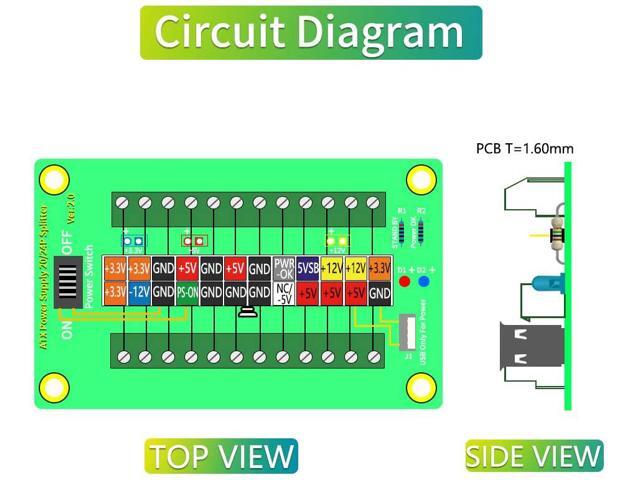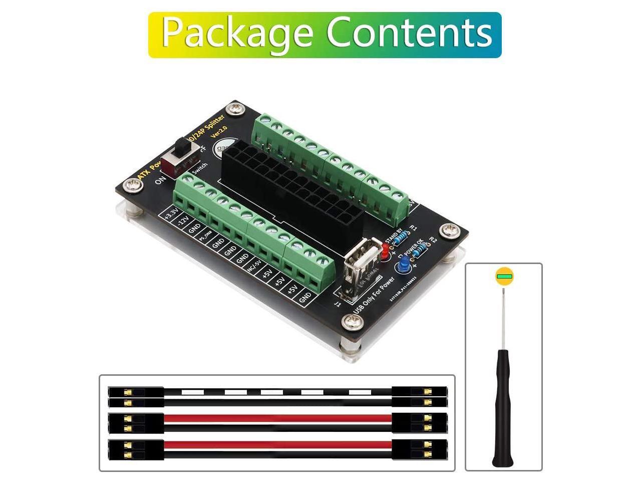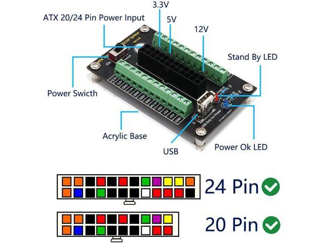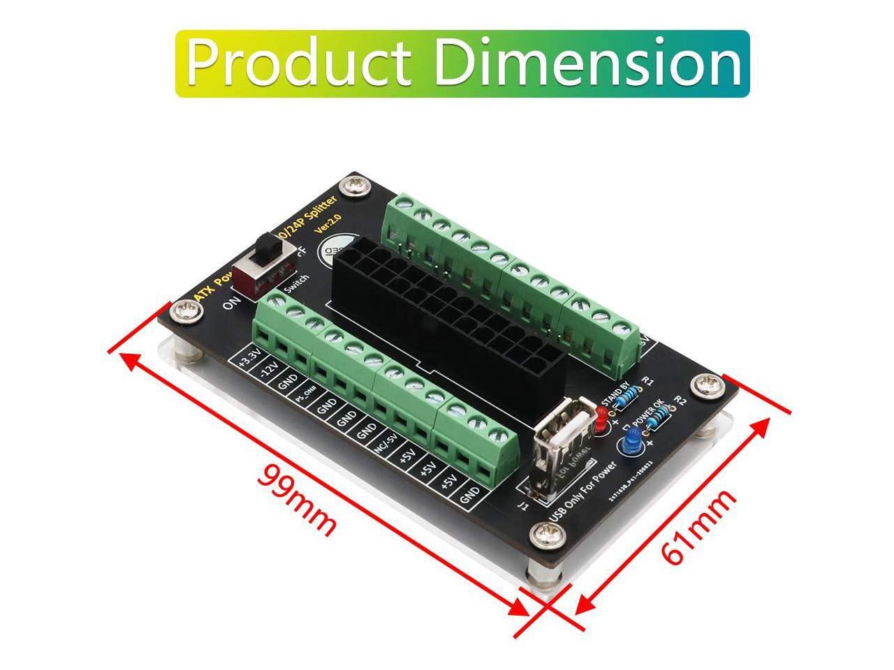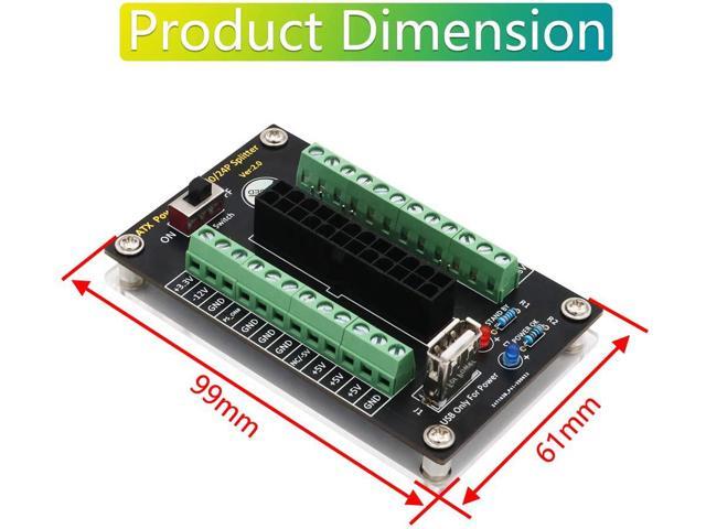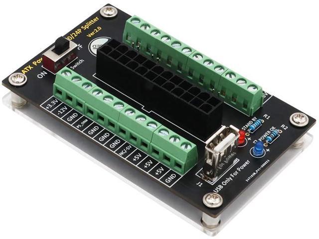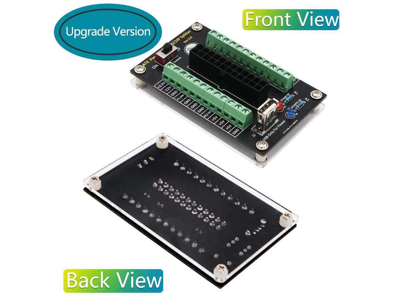 Upgrade Version ATX 24/20 Pin Power Supply Breakout Board Module With USB 5V Port and Acrylic Base