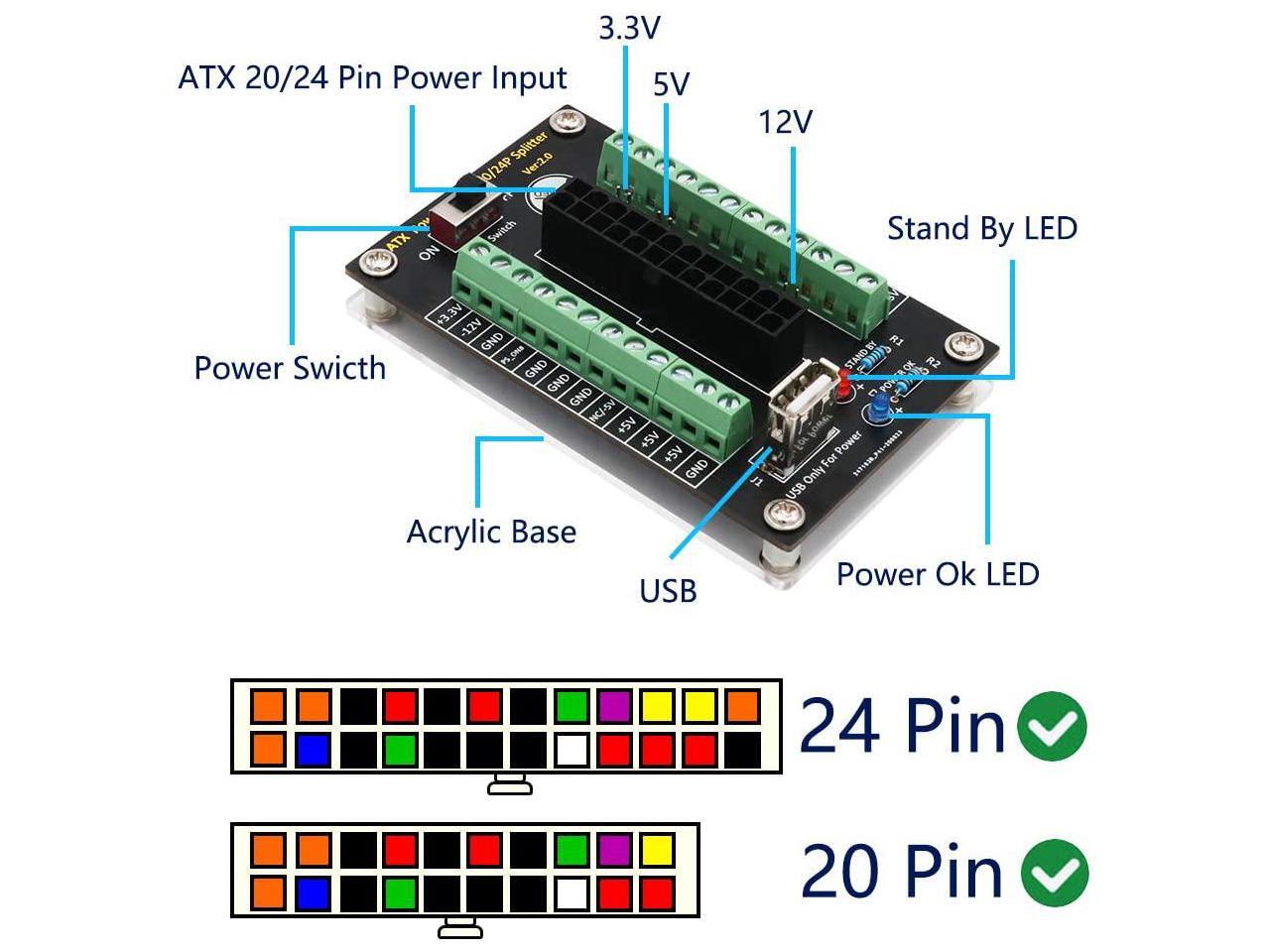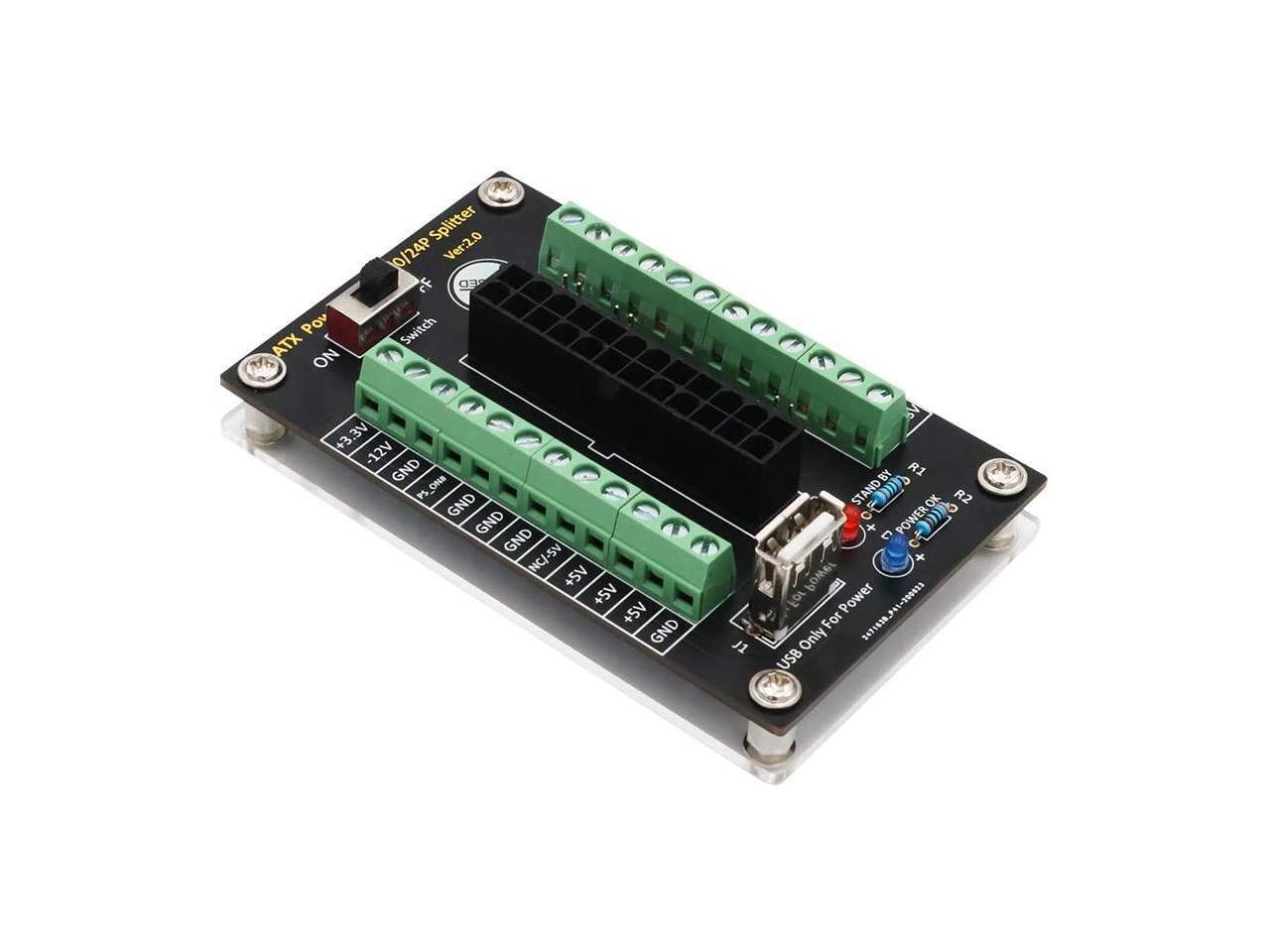 ATX 24/20 Pin Power Supply Breakout Board Module with USB 5V Port and Acrylic Base