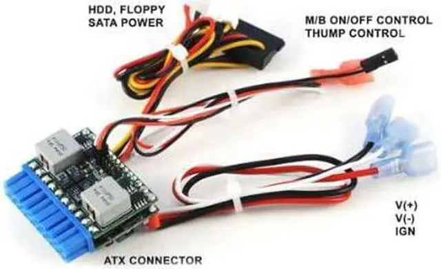 The M3-ATX is an intelligent, high power, vehicle DC-DC ATX PC power supply designed for car pc or battery powered applications. Designed to provide power and to control the ON/OFF switch of a motherboard (car PC) based on ignition status, the M3-ATX is a wide input (6 to 24V) vehicle/car battery operated ATX power supply, capable of surviving tough engine cranks (down to 6V), as well as transient over-voltage situations. Just connect it to your car/boat/RV and power up your PC.The M3-ATX is based on a similar design as the M2-ATX, but with dramatic size reductions (pico PSU plug-in style).By using Patent Pending HyperWatt[TM] technologies, the M3-ATX packs an impressive amount of power relative to it's very small footprint.