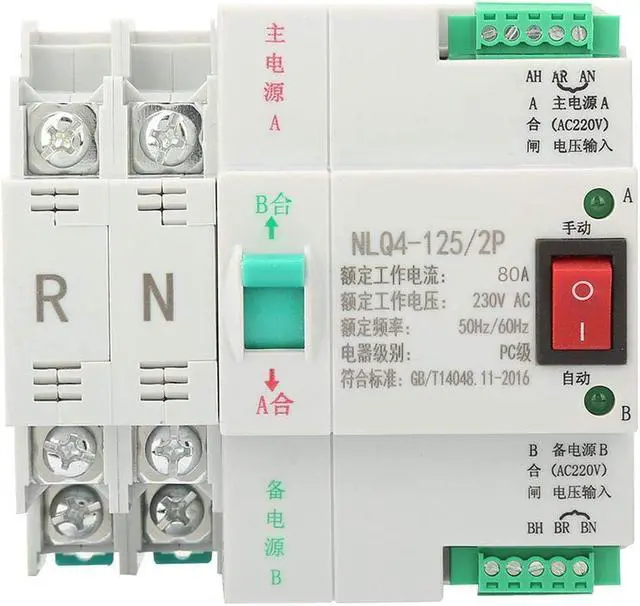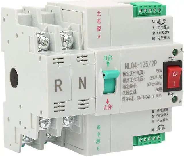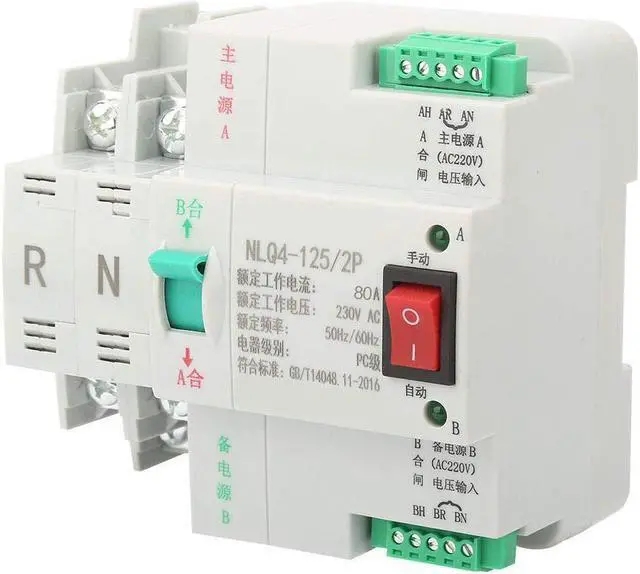 The outer casing of the switch is made of flame retardant material, which is resistant to high temperature, is not easily deformed, and is safer to use. Sensitive response, millisecond fast switching of power supply. Rail-mounted installation, simple and convenient, effectively protect your electricity safety and stability. Reasonable structure, small size, beautiful appearance, long service life. Noise-free operation, simple operation, reliable performance. Double power automatic switching switch is to switch the two power supply, divided into the common power supply and standby power supply. When the common power supply is cut off, the backup power supply will be restored to the common power supply after the common power is called. In special cases, automatic switching is not required, and manual switching can also be set by yourself.