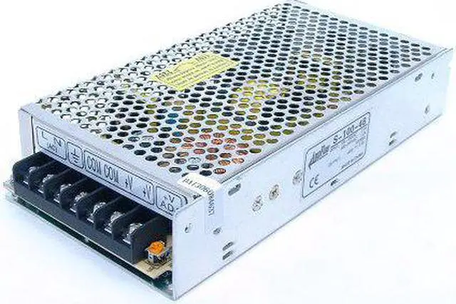 Connect this unit to 110 or 220 Volts AC household power, and it will supply 100 Watts at 48 Volts DC and 2 Amps. This power supply has been engineered specifically for use with DC motors. Most power supplies designed for use with LED lighting or other electronics will simply shut down when exposed to the high current demands of motors. Built-in current limiting protects the unit from overloads and short circuits. The current limiting feature enables these power supplies to keep functioning through the high-current start-up surges from motors. AmpFlow power supplies will just limit the current to the rated maximum even when a larger load is called for, (like when a DC motor starts up). Also, inductive loads (like motors) can cause damage to power supplies that are not designed for them. These power supplies also work well in any application where AC line voltage needs to be converted to DC voltage. Other uses include LED lighting, HAM radio, battery charging, and replacing plug-in AC adapters when more power is required. Short-circuit and overload protections help these units survive harsh operating conditions. The power supply shuts down temporarily if the temperature, current, or voltage goes beyond the safe operating range, and it starts up again automatically when the condition goes away no rebooting is necessary. This high-efficiency power supply has an output voltage that is adjustable by plus or minus 10%. It includes an EMI filter to minimize interference with radio signals and a soft-start circuit that reduces the AC inrush current peaks. Every power supply goes through a full-load burn-in test, so no defective unit leaves the factory. This unit meets all the following safety and EMC standards: UL 1950, EN60950, EN55022, IEC100-3-2, CE, ROHS AmpFlow power supplies are available in 5V, 12V, 24V, 36V, and 48 Volts at up to 1000 Watts. Search Amazon for "AmpFlow power supply" for more choices.