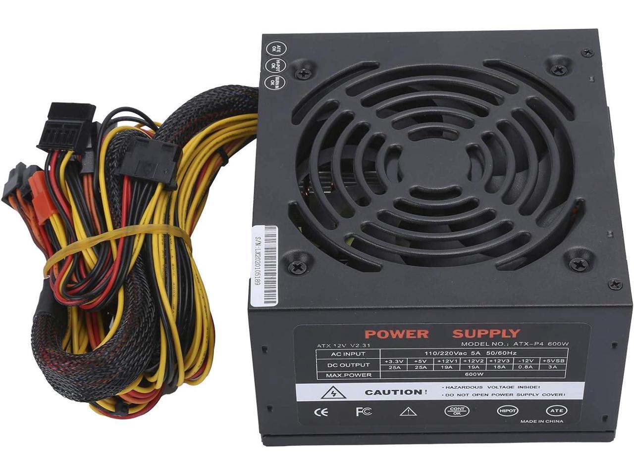 Computer Power Supply,Computer Power Supply Desktop Accessory Mute Fan Manual Adjustable 115/230V ATX 24PIN (US)