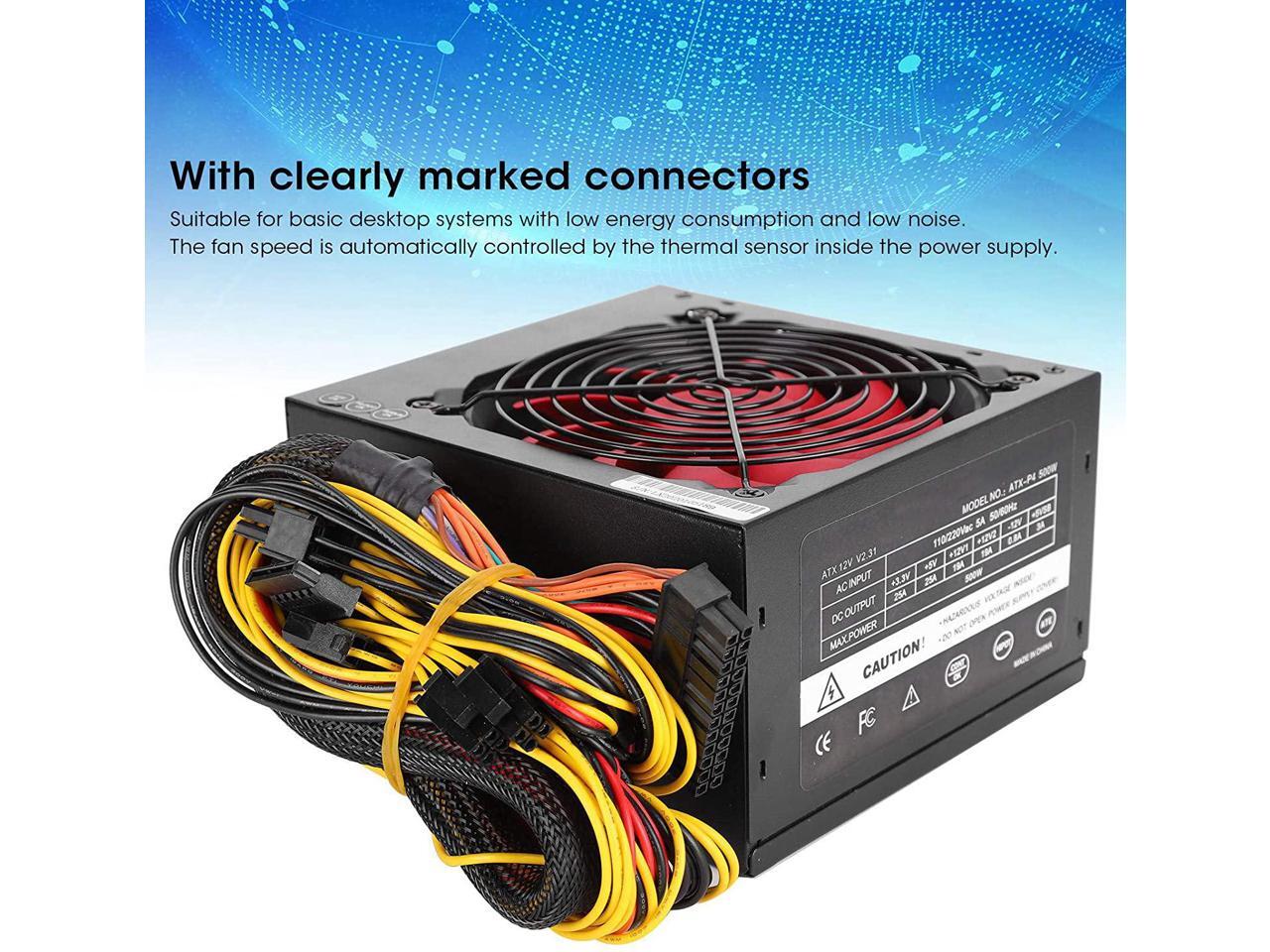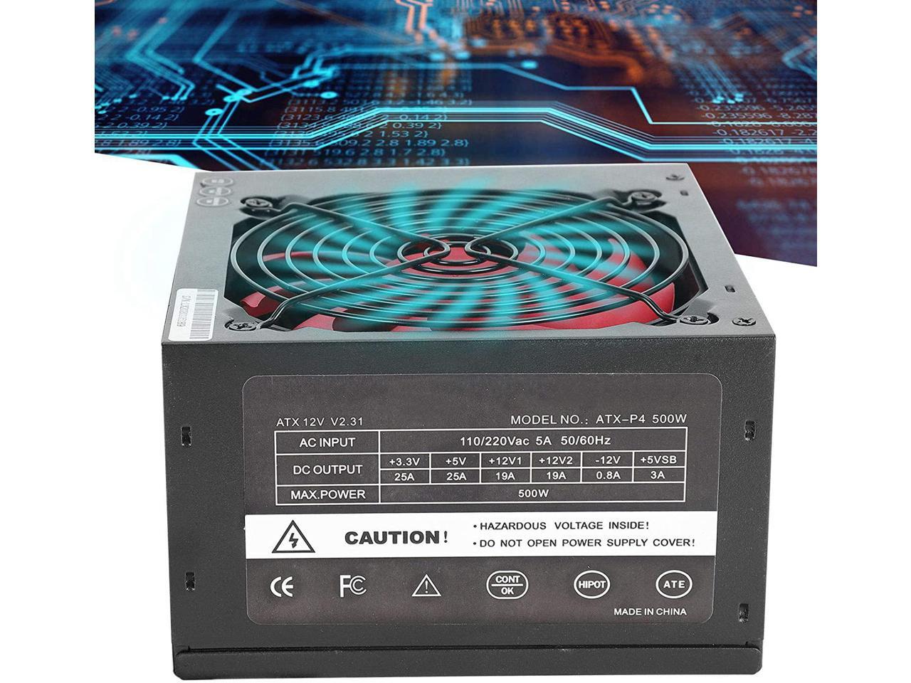 EBTOOLS Computer Power Supply, 500W Adjustable 115/230V PC Desktop Power Supply with Red Silent Fan, Low Energy Consumption(US Plug)