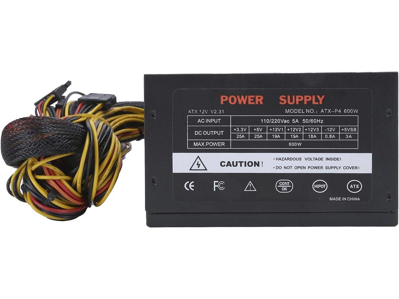 eboxer-1 600W Computer Power Supply, ATX 24PIN PC Power Supply Desktop with Mute Fan Manual Adjustable 115/230V(US)